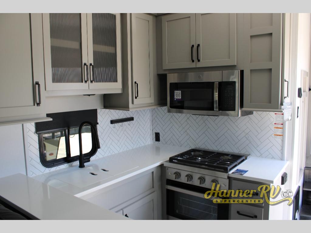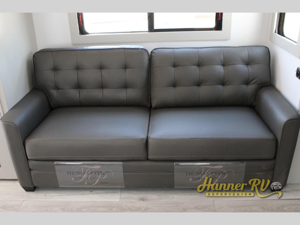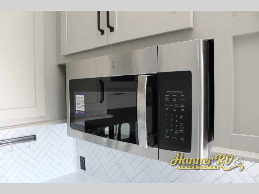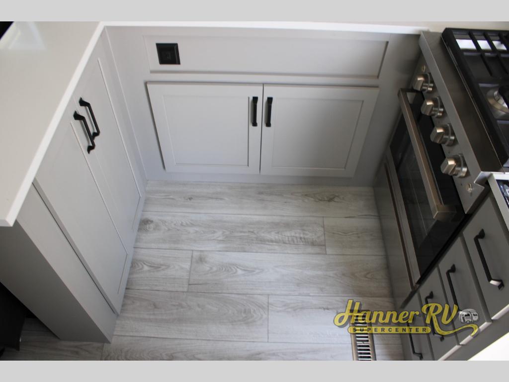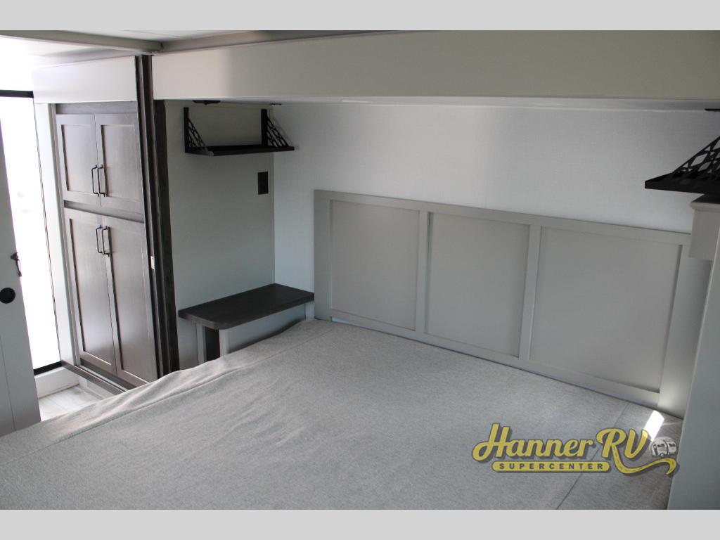 This couples coach will have you excited about traveling to all of your favorite places, and new locations too! The triple slide unit features an open concept living/dining area with dual opposing slides at the very back featuring a hide-a-bed sofa along the curbside, and a dining space opposite with a booth dinette or choose the optional table and four chairs. Power theater seats will be a comfortable place to kick back for a movie, and you will love the all-new entertainment center design featuring a fireplace, Smart TV, and overhead cabinets. In the evening, head up to your private retreat with a spacious bath including dual entry doors from the hall at the top of the stairs or from within the private bedroom. Get cleaned up in the large radius shower with seat and snuggle up in a king bed slide. The bedroom slide also features a large wardrobe that has been prepped for a washer/dryer if you choose to add the convenience. You will find plenty more storage spaces for your clothing and belongings in the two dressers or dual wardrobes along the full front wall. Another bonus with this unit is the outdoor kitchen which gives you a choice to cook inside or out!