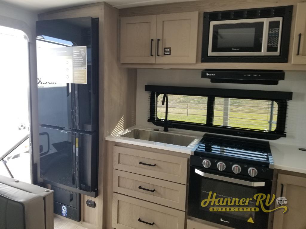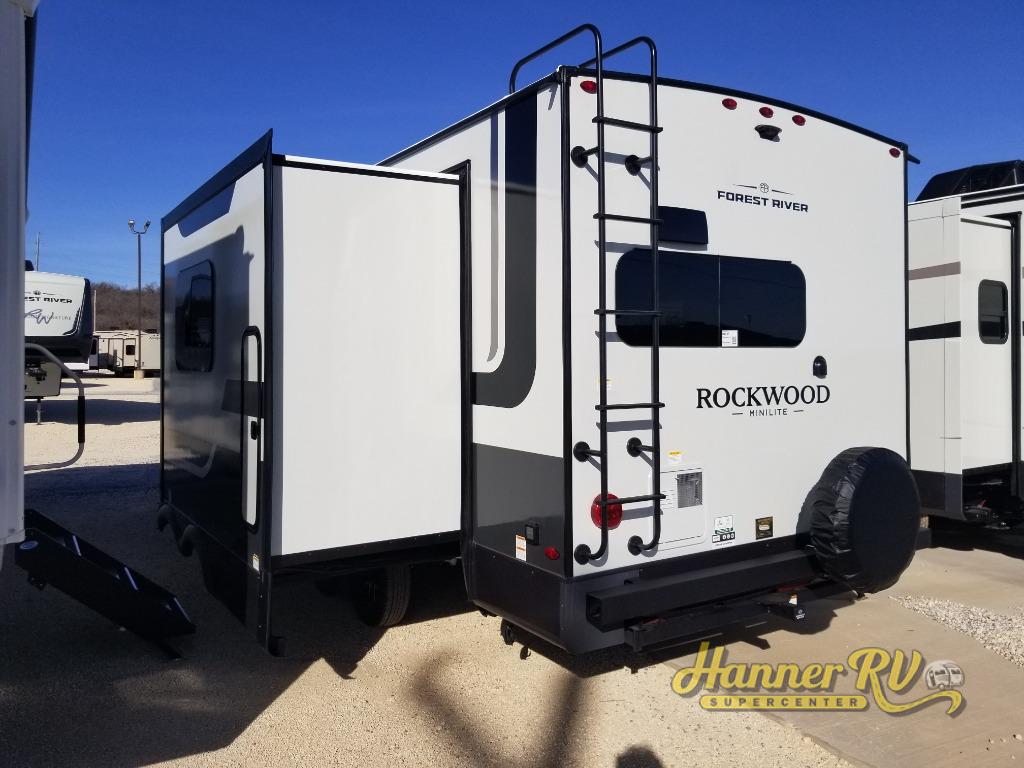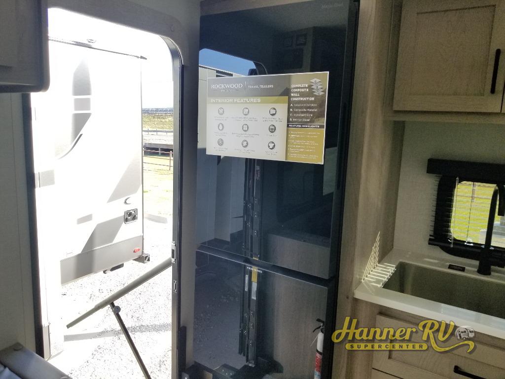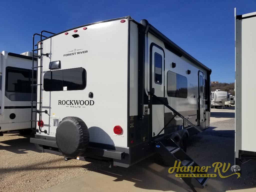 Each Rockwood Mini Lite travel trailer by Forest River is constructed with a fully laminated one-piece walkable roof, sleek frameless windows, and a six-sided full aluminum frame for strength and durability. The 12V thermostatically controlled heated tanks, plus radiant foil in the underbelly will allow you to camp well into the colder months, and the 200W roof solar panel will be perfect for a little off-gridding. Each model includes solid surface kitchen countertops, hidden hinge cabinet doors, roller shades, plus many more interior features. Having an AIR 360+ omnidirectional antenna with WiFi prep on board gives you the option to get some work done if it's needed, and the power tongue jack provides hassle-free set up, so you can enjoy more time relaxing!