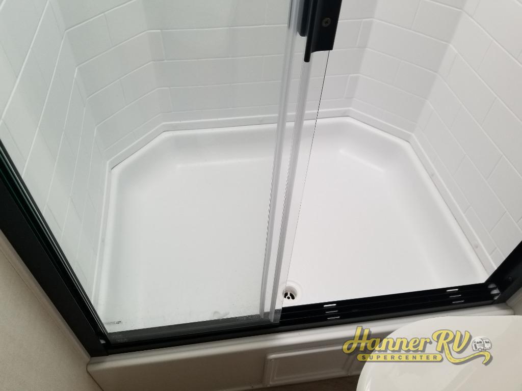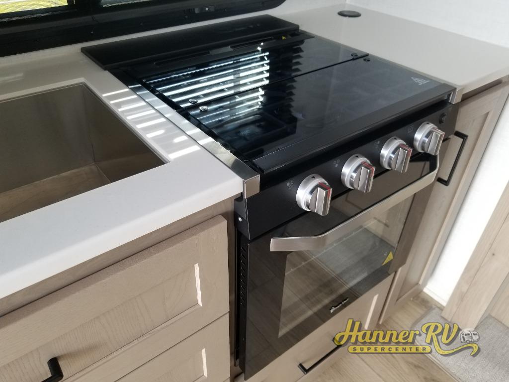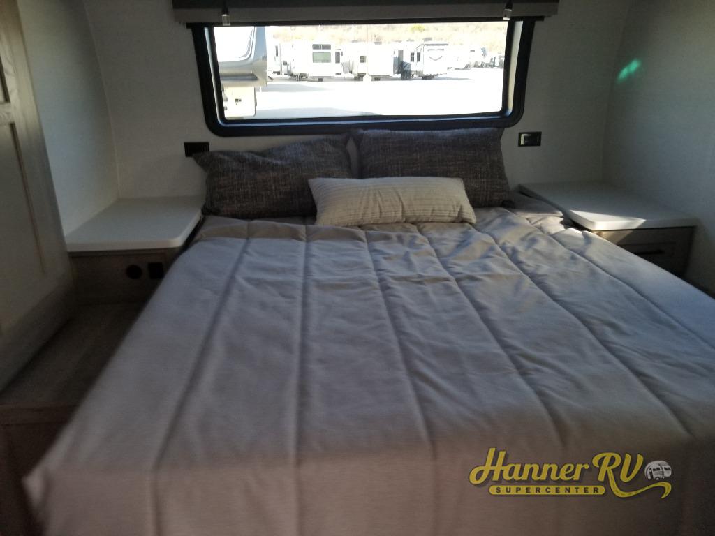 You and your spouse will have a great time camping in this travel trailer! You will have your own RV queen bed to sleep on in the front private bedroom, and an optional TV can be added if you enjoy the morning news in bed. Breakfast can be made on the three burner cooktop in the rear kitchen, or head outdoors to cook on the outside griddle. The 67" theater seating with cupholders will provide a place to relax and dine together, and the spacious walk-through bath will allow you to clean up before you head out for the day. This model includes plenty of storage space, including a pantry for your snacks, a wardrobe slide out in the bedroom, plus a drop-frame pass-through storage for larger camp gear!