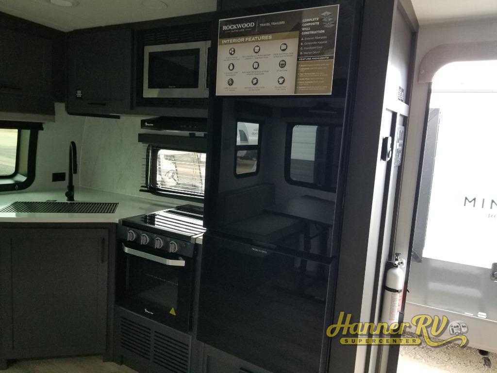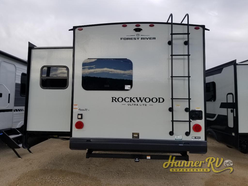 Each Rockwood Ultra Lite travel trailer by Forest River includes superior construction with a high gloss fiberglass cap, aluminum cage construction, and a power awning with LED lighting for a cozy and functional outdoor space. The torsion axle, power tongue jack will make towing smooth and hassle-free, along with the nitrogen filled, Goodyear Endurance tires and the tire pressure monitor system. Interior comforts include kitchen sink with high rise faucet, hidden hinge cabinet doors, and roller shades to name a few. Choose a Rockwood Ultra Lite travel trailer today!