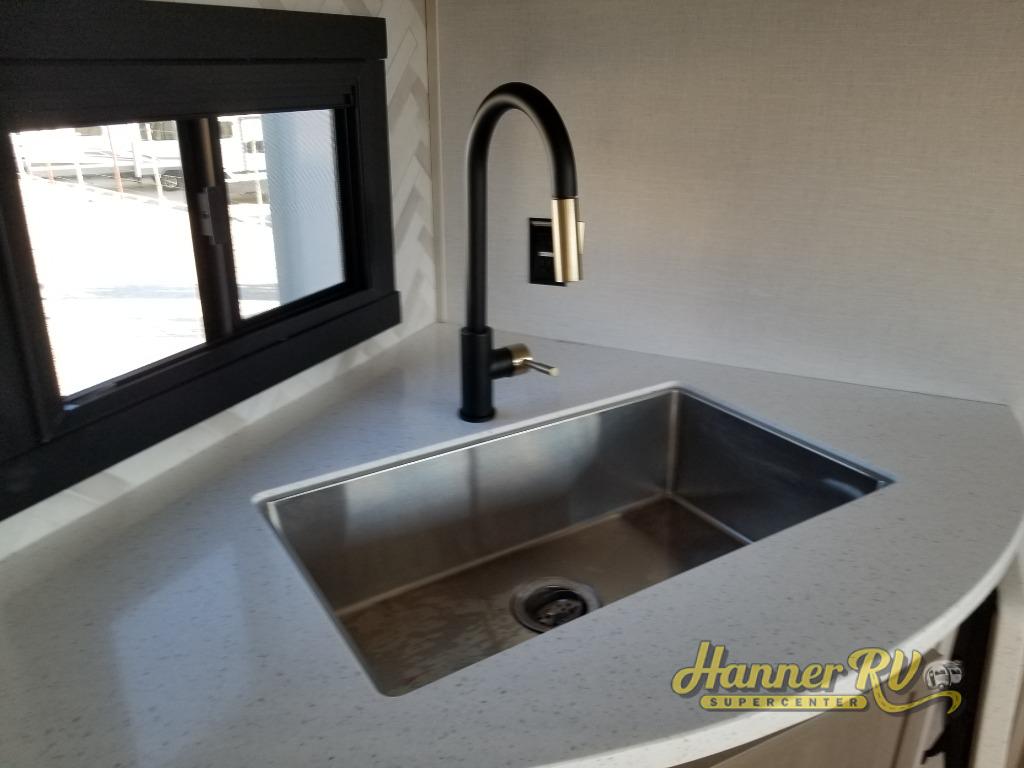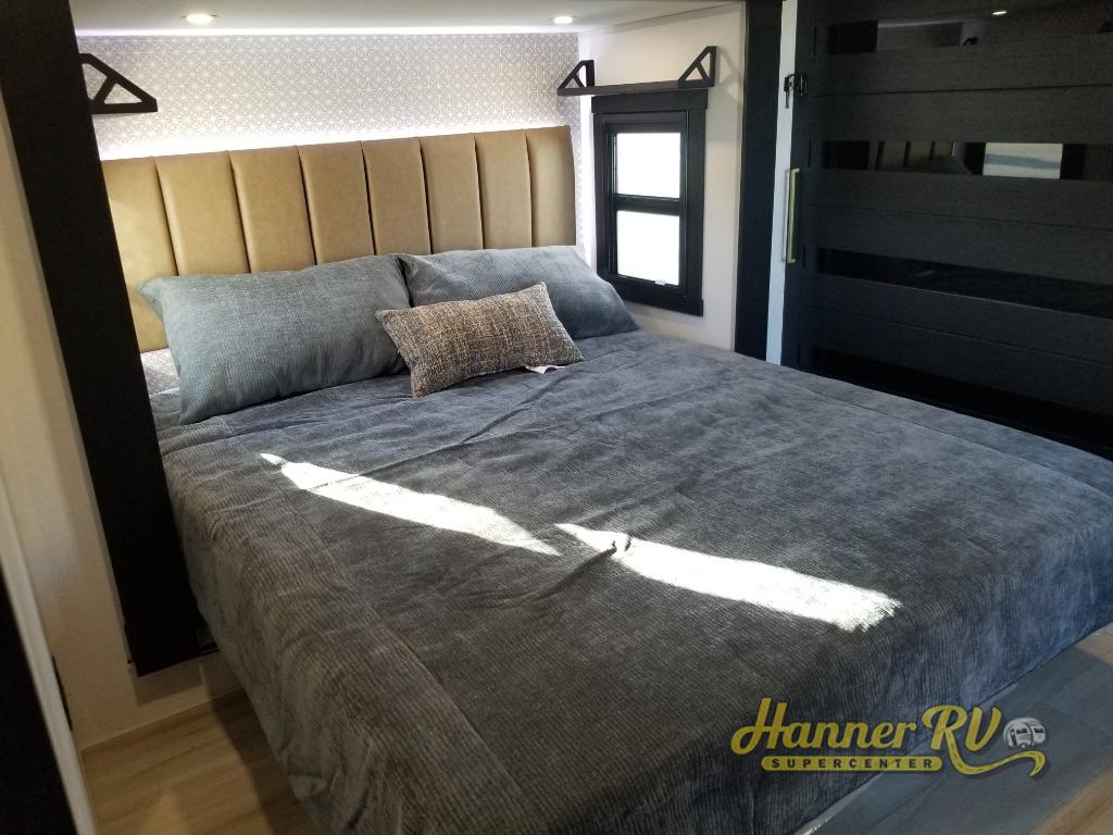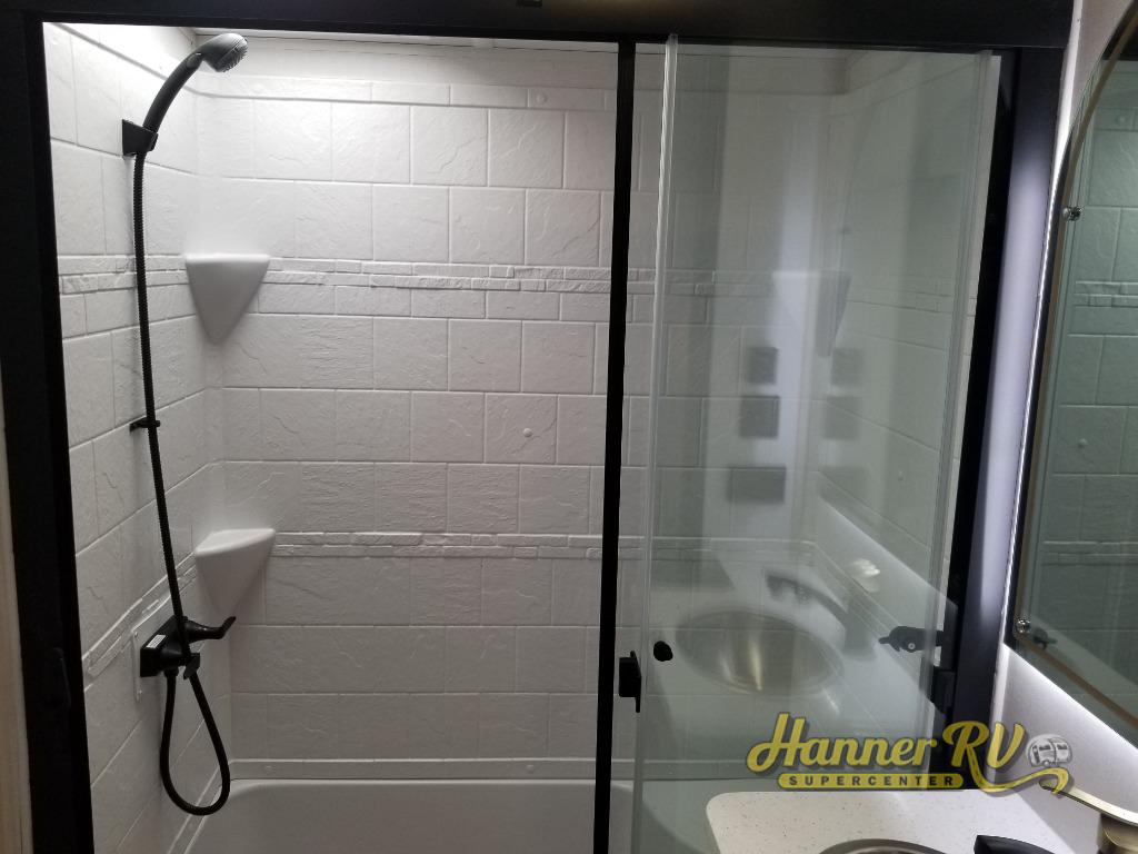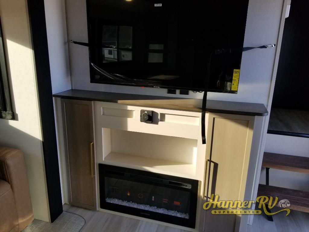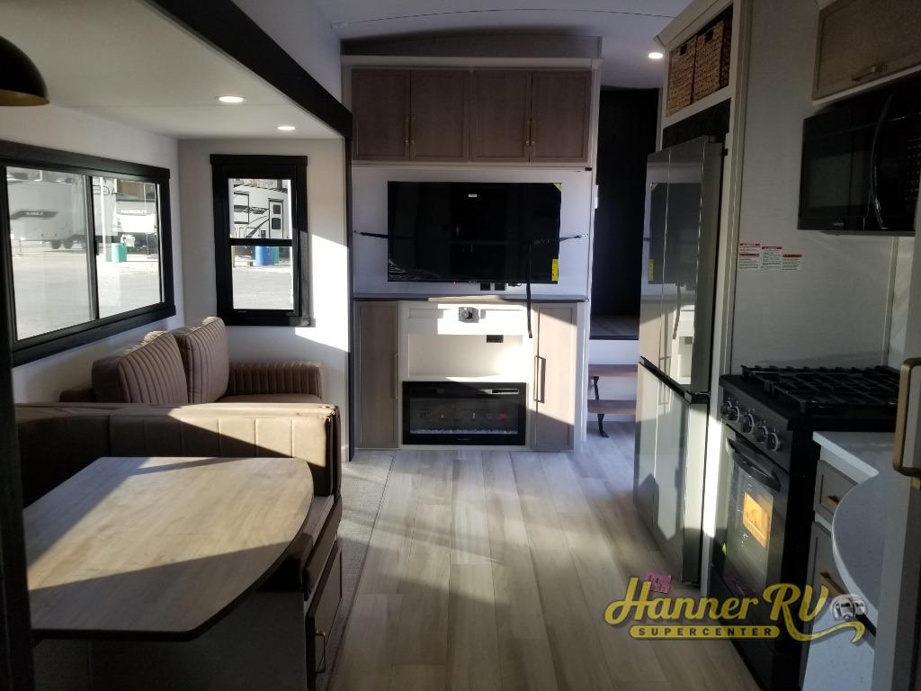 With any Wildwood Heritage Glen fifth wheel by Forest River, the quality construction, attention to detail and design along with a bright and welcoming interior allows you to relax in comfort. You'll love the high-end solid surface countertops included in the Elevated Value Package, along with a JBL sound system, full-length barreled ceilings, and an ultimate interior lighting upgrade. The included Expedition Package features an Accesibelly underbelly panel with 12V tank heaters, nitrogen-filled tires with aluminum rims, and a spacious 30" wide main entry door with a window. The Lippert On-The-Go ladder prep and back-up camera prep let you customize your fifth wheel even more, and the LED awning, front cap, marker and taillights will make it easier than ever to set up camp!