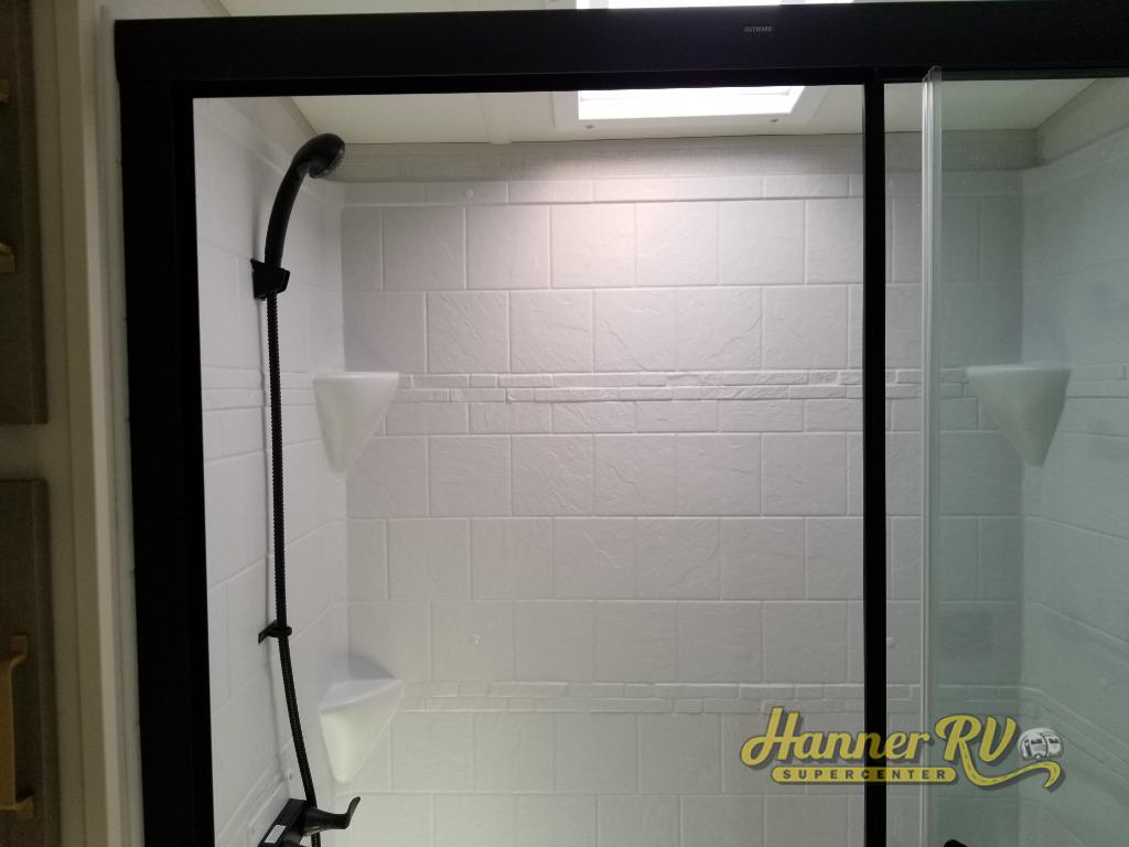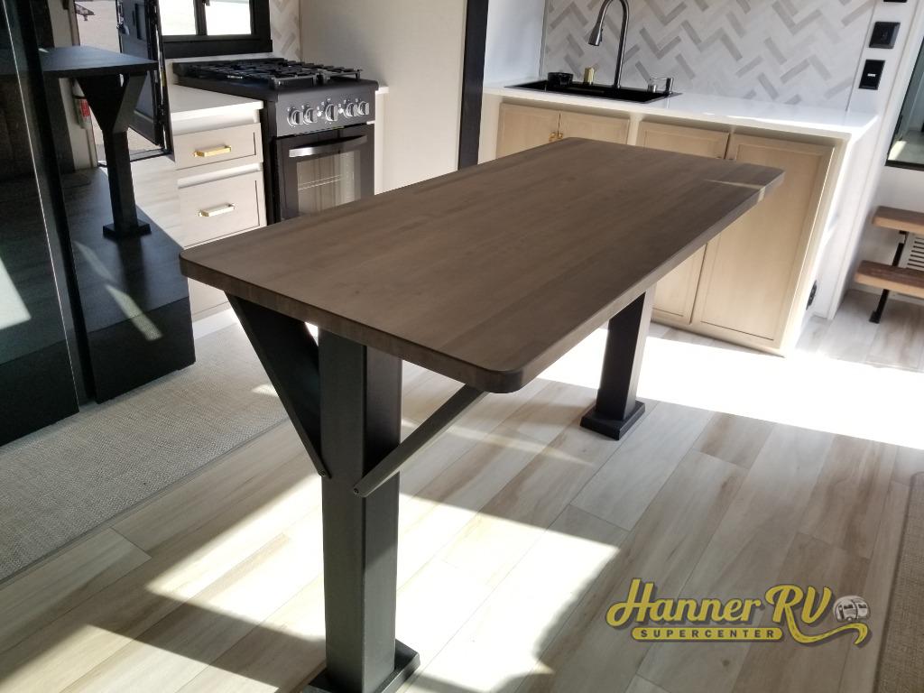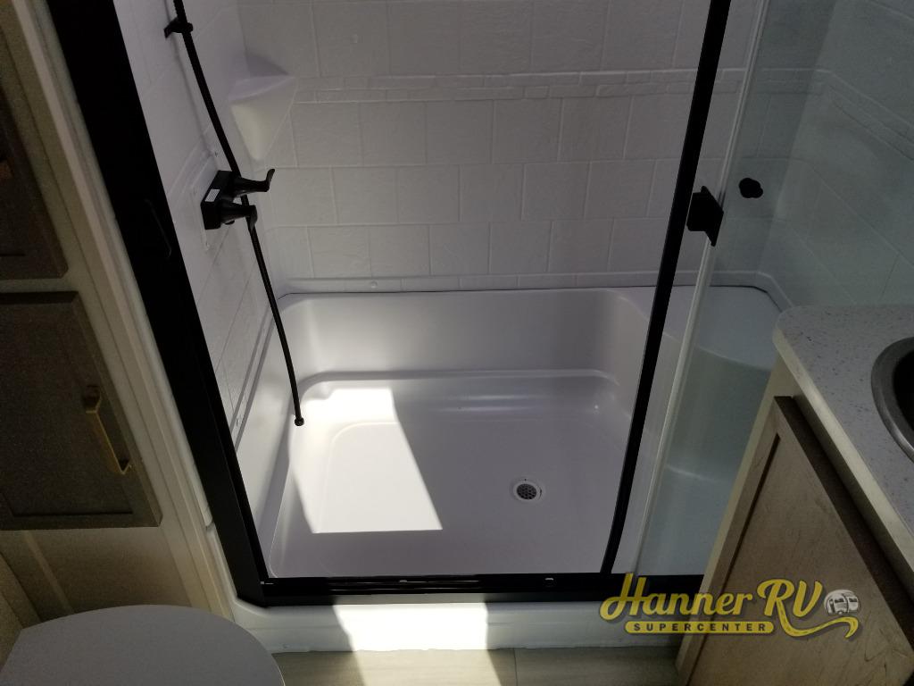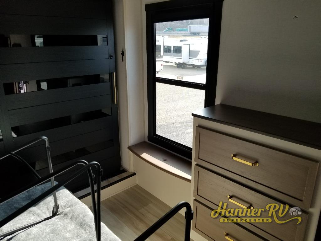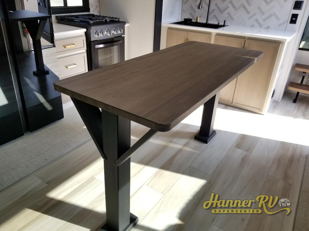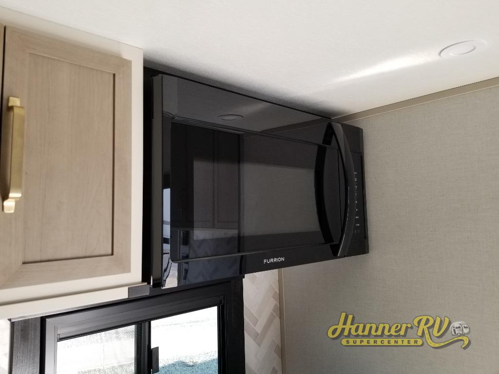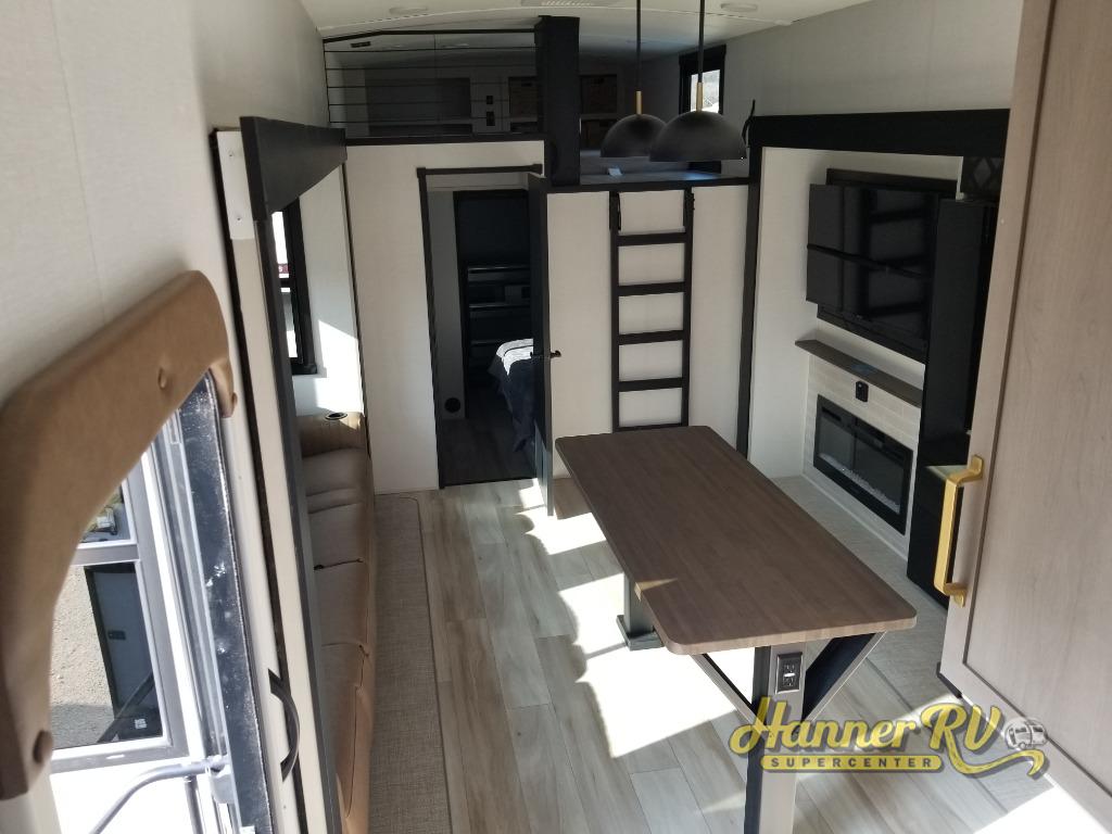 With any Wildwood Heritage Glen fifth wheel by Forest River, the quality construction, attention to detail and design along with a bright and welcoming interior allows you to relax in comfort. You'll love the high-end solid surface countertops included in the Elevated Value Package, along with a JBL sound system, full-length barreled ceilings, and an ultimate interior lighting upgrade. The included Expedition Package features an Accesibelly underbelly panel with 12V tank heaters, nitrogen-filled tires with aluminum rims, and a spacious 30" wide main entry door with a window. The Lippert On-The-Go ladder prep and back-up camera prep let you customize your fifth wheel even more, and the LED awning, front cap, marker and taillights will make it easier than ever to set up camp!