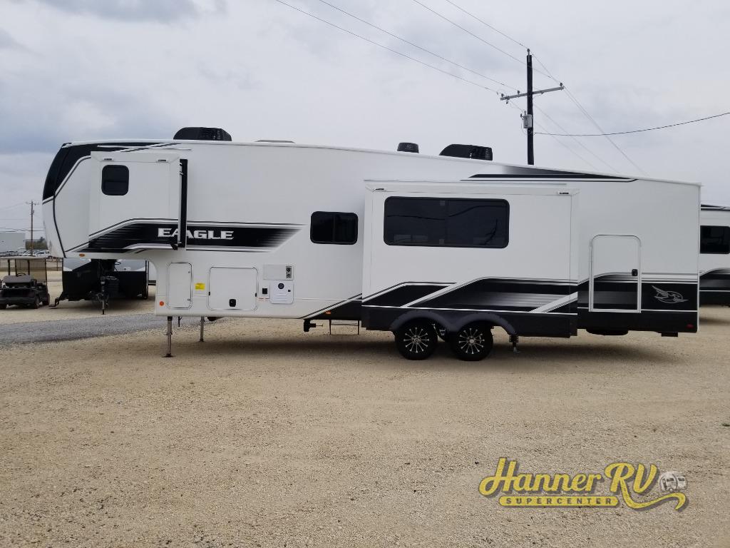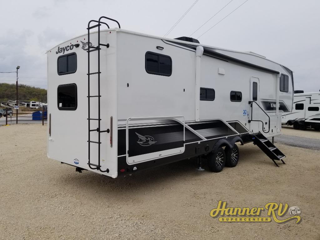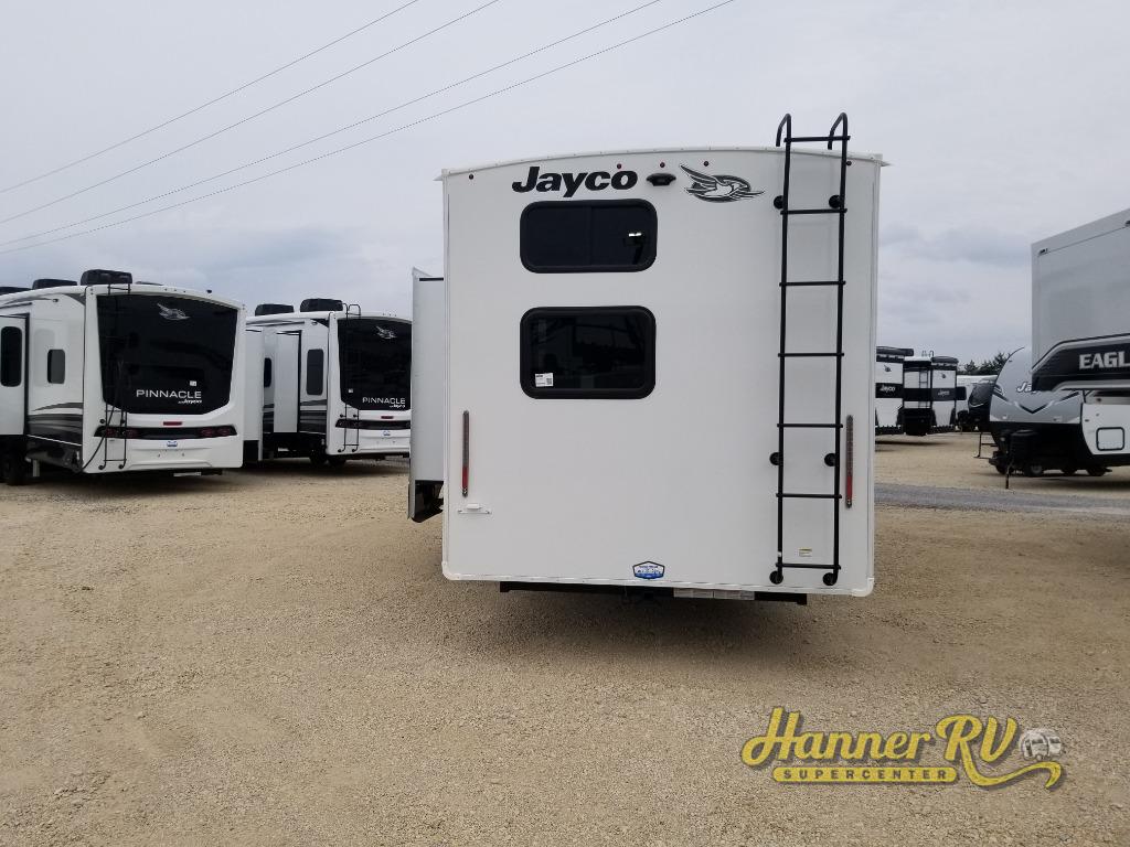 With any Eagle HT fifth wheel or travel trailer by Jayco you will enjoy a smooth drive thanks to the 4 Star Handling Package and MORryde CRE-3000 rubberized suspension. The Customer Value Package includes amenities that are sure to make camping easier than ever, like the 60K on-demand water heater, Keyed-Alike lock system, 15,000 BTU "Whisper Quiet" A/C, and more. Handcrafted door/drawer fronts will make your space feel more like home, along with residential vinyl flooring throughout, GE appliances, and blackout roller shades with reflective side throughout to keep the sun out when you want to sleep in. Each model also includes a NuVo H2O water treatment system with filters included, interior and exterior "Blue Sync" audio connect with MB Quart Sound for your TV and phone, and 100% no floor vents for added comfort and convenience!