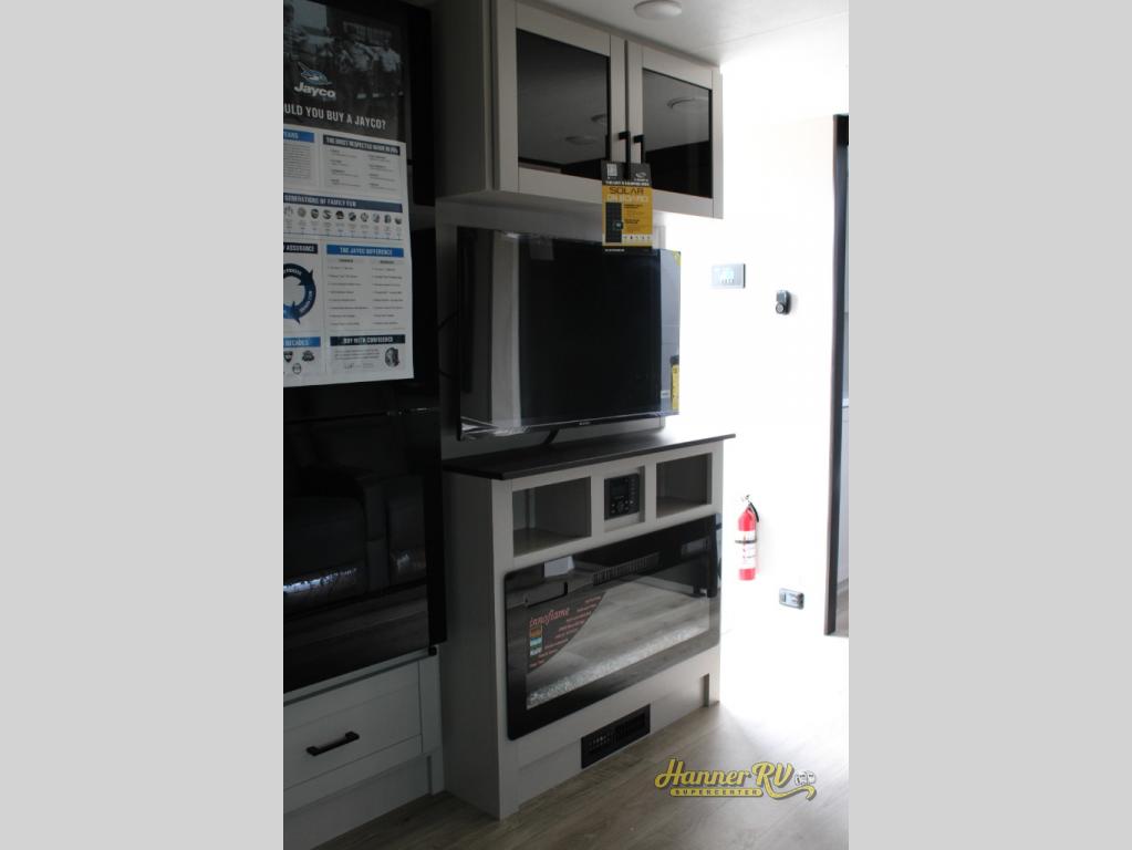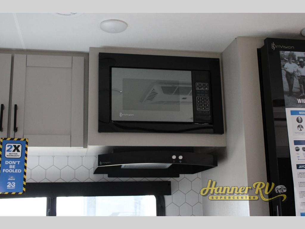 With any Jay Feather travel trailer by Jayco, you will enjoy lightweight towing, convenient exterior amenities, and at-home comforts inside! The Overlander 1 Solar Package included within the Jay Sport Package comes with a 200W solar panel and a 30-amp digital controller so you can enjoy some off-grid camping. There is also a modern graphics package with a dual-colored sidewall, LCI Solid Step fold-down aluminum tread steps on the main entry door, and Climate Shield 0 -100° F tested weather insulation package that will allow you to camp in all sorts of climates. The Customer Value Package will make time outdoors easier than ever with a power tongue jack and a Rock Solid stabilizer system, plus American-made nitro-filled Goodyear tires with self-adjusting electric brakes. More exterior features include a Keyed-Alike locking system, marine grade exterior speakers, a Magnum Truss roof system, and the list goes on! And we haven't even touched on the interior comforts, like the residential style seamless countertops and vinyl flooring throughout, decorative backsplash, handcrafted hardwood door/drawer fronts, and multiple USB charging ports to keep you going!