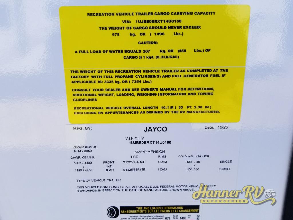 With any Jay Feather travel trailer by Jayco, you will enjoy lightweight towing, convenient exterior amenities, and at-home comforts inside! The Overlander 1 Solar Package included within the Jay Sport Package comes with a 200W solar panel and a 30-amp digital controller so you can enjoy some off-grid camping. There is also a modern graphics package, Solid fold-down step with aluminum tread steps on the main entry doorstep, and Climate Shield 0 -100° F tested weather insulation package that will allow you to camp in various types of climates. The Customer Value Package will make time outdoors easier than ever with a power tongue jack and Automotive-style aluminum rims, plus radial tires with self-adjusting electric brakes. More exterior features include a Keyed-Alike doors, a Magnum Truss roof system, and the list goes on! And we haven't even touched on the interior comforts, like the seamless countertops and Residential vinyl flooring throughout, decorative kitchen backsplash, handcrafted hardwood door/drawer fronts, and multiple USB charging ports to keep you going!