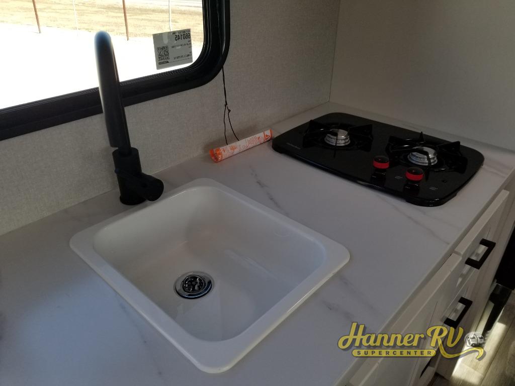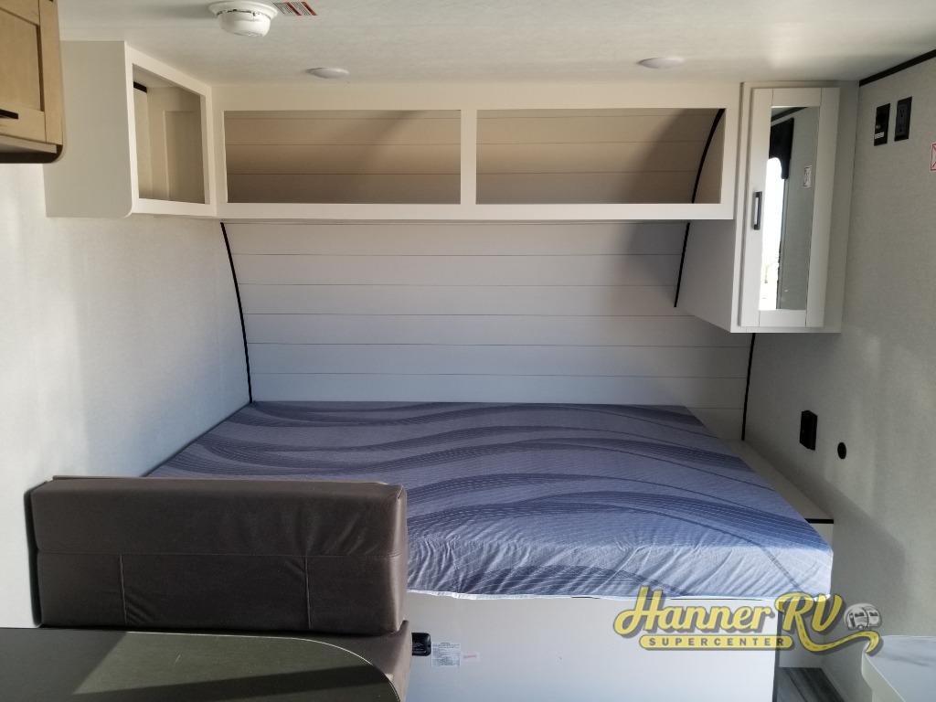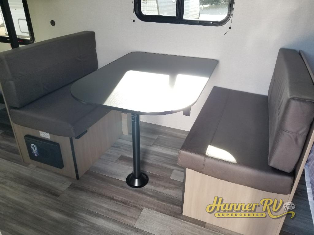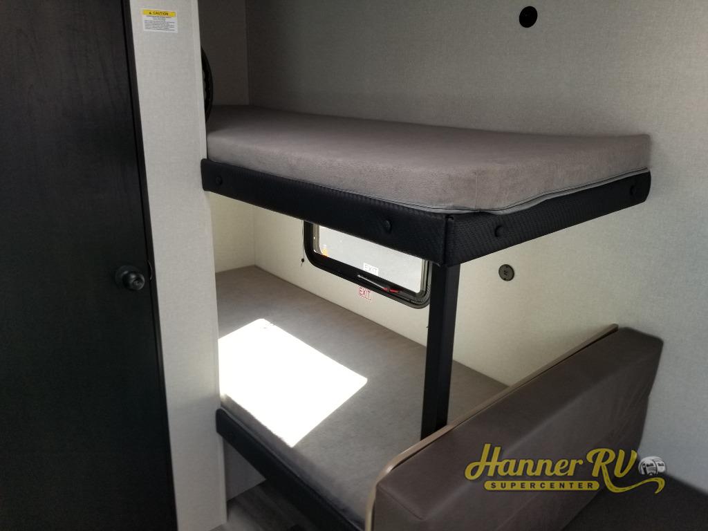 Your crew of five will love camping in this single-axle travel trailer! There are bunk beds in the rear corner and a full bath in the other rear corner for easy nighttime use. You will have the front queen bed to yourselves, along with an overhead shelf and a nightstand/wardrobe for your clothes. The booth dinette provides a place to dine, play games, and even let an extra guest stay over. The Customer Value Package on this Sport Edition model includes a 19K BTU furnace, stabilizer jacks, a power awning, an entry door with a window and shade prep, and many more stand-out features!