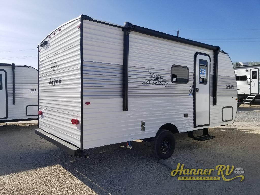 The Jayco Jay Flight SLX travel trailer is quite easy to own because it is lightweight for an easier towing experience. Built on a fully integrated A-frame with galvanized-steel, impact-resistant wheel wells, the Jay Flight SLX has quality at its very foundation. That quality continues on to the electric self-adjusting brakes, easy-lube hubs, Magnum Truss roof system, and LP quick connect. Some of what the mandatory Customer Value Package includes is backup camera prep, Keyed-Alike entry and baggage doors, and an on-demand tankless water heater.