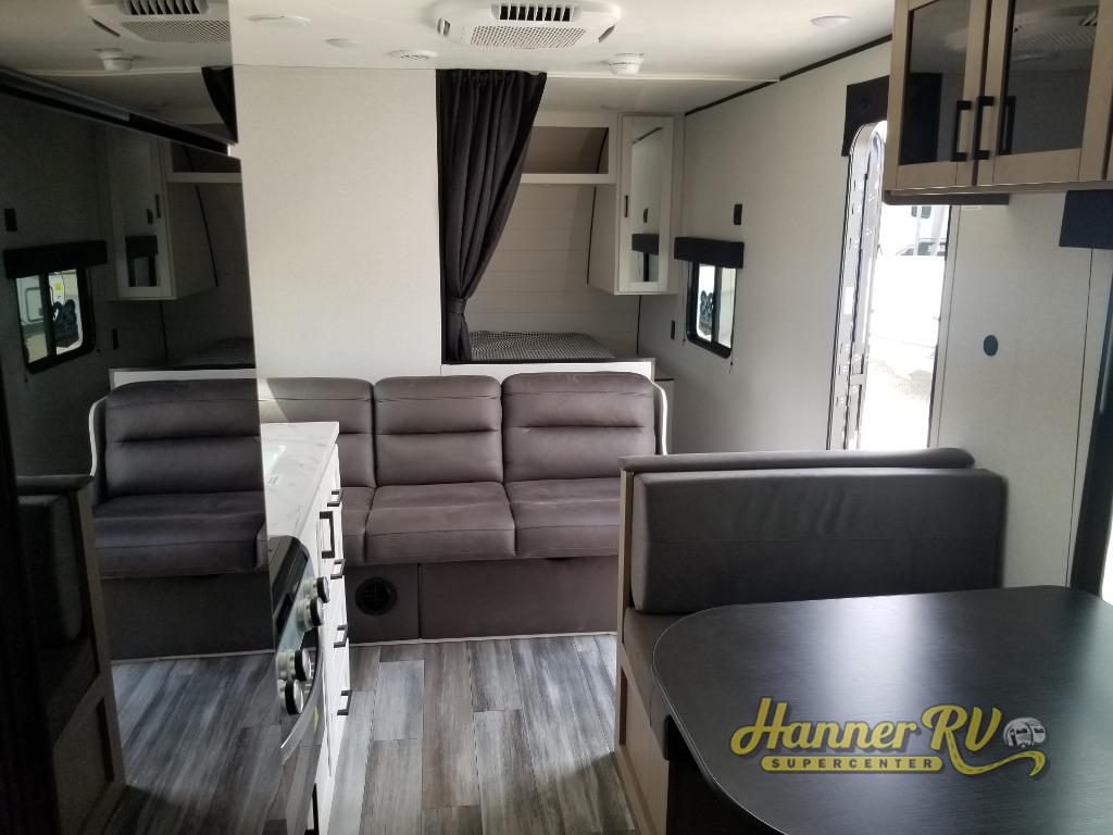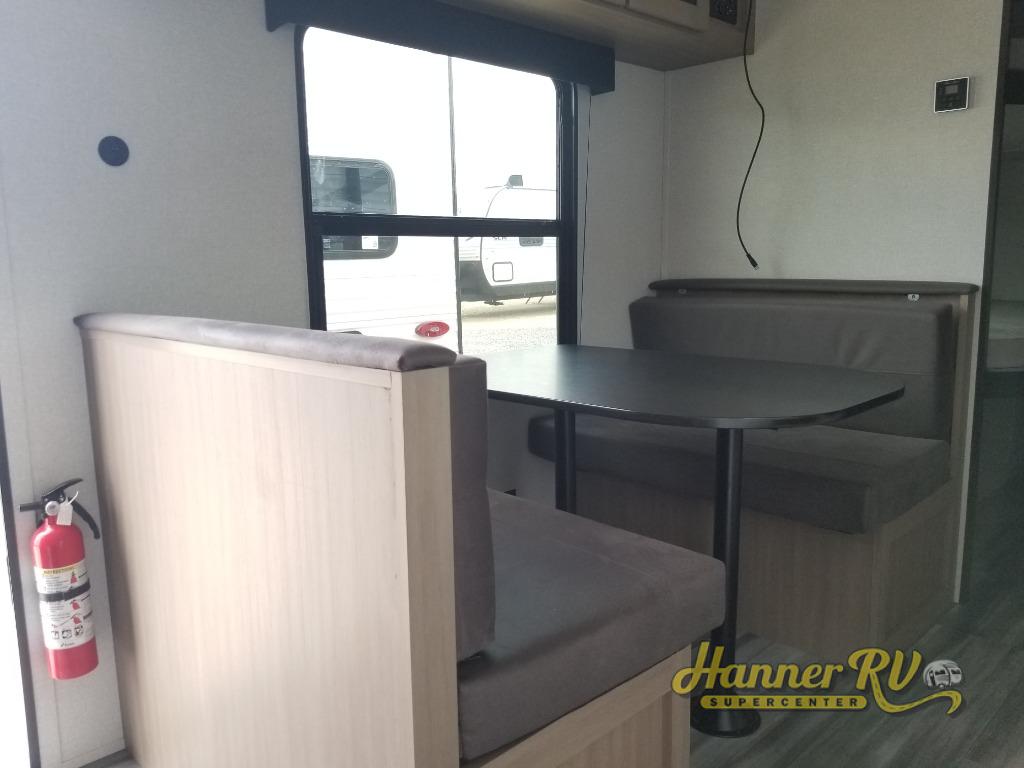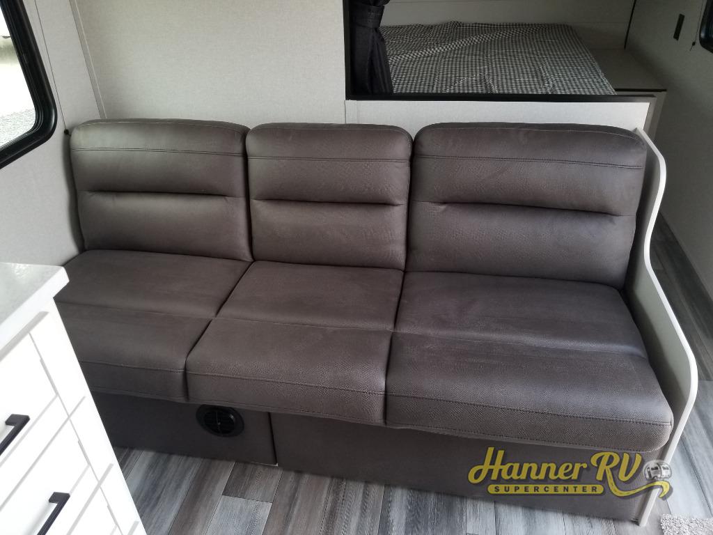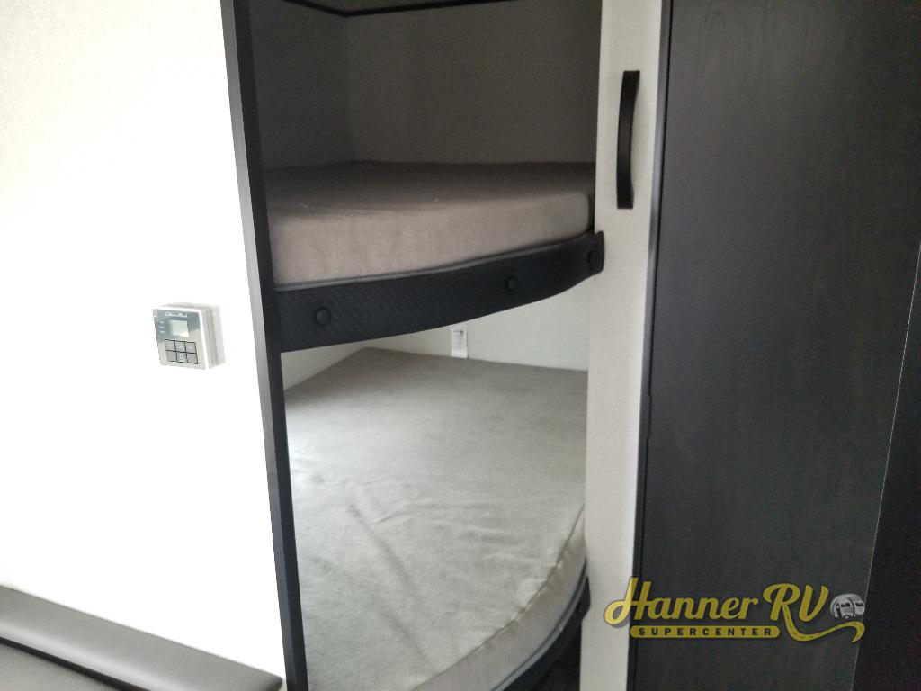 You can comfortably sleep eight to ten people in this trailer thanks to the double-size bunks, the RV queen bed in the front bedroom, plus the booth dinette and jack-knife sofa in the main living area! The chef of your crew will have a three burner cooktop and microwave oven to prepare meals, and everyone can store their favorite drinks in the 8 cu. ft. 12V refrigerator. The bathroom includes a shower and a toilet, with the sink just outside of this room so others can brush their teeth if one is taking a shower before bed. The outside storage will let you bring along fishing poles and the 16' power awning with LED lights will create a nice place to gather in the evenings!