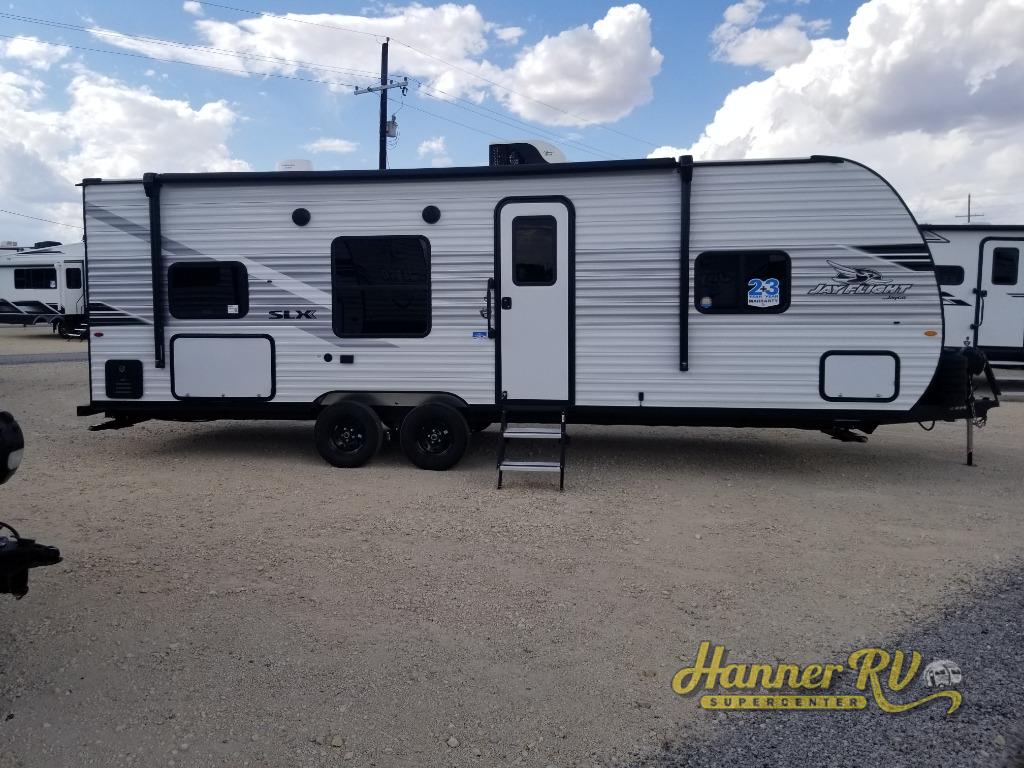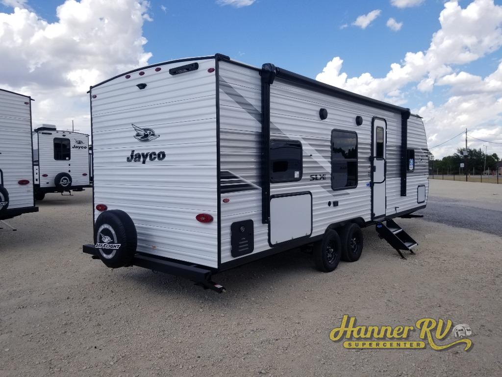 The Jayco Jay Flight SLX travel trailer is quite easy to own because it is lightweight for an easier towing experience. Built on a fully integrated A-frame with galvanized-steel, impact-resistant wheel wells, the Jay Flight SLX has quality at its very foundation. That quality continues on to the electric self-adjusting brakes, easy-lube hubs, Magnum Truss roof system, and LP quick connect. Some of what the mandatory Customer Value Package includes is backup camera prep, Keyed-Alike entry and baggage doors, and an on-demand tankless water heater.