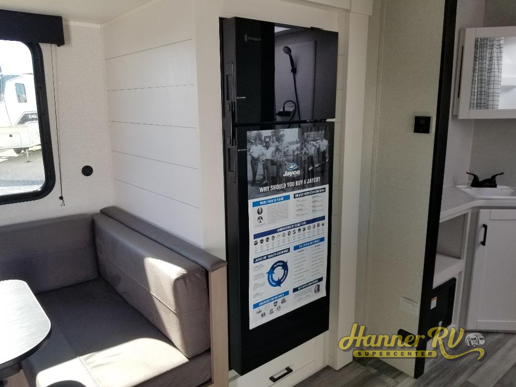 The Jayco Jay Flight SLX travel trailer is quite easy to own because it is lightweight for an easier towing experience. Built on a fully integrated A-frame with galvanized-steel, impact-resistant wheel wells, the Jay Flight SLX has quality at its very foundation. That quality continues on to the electric self-adjusting brakes, easy-lube hubs, Magnum Truss roof system, and LP quick connect. Some of what the mandatory Customer Value Package includes is backup camera prep, Keyed-Alike entry and baggage doors, and an on-demand tankless water heater.