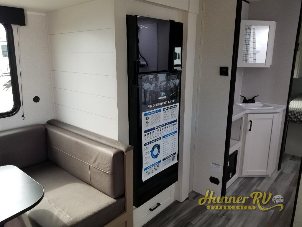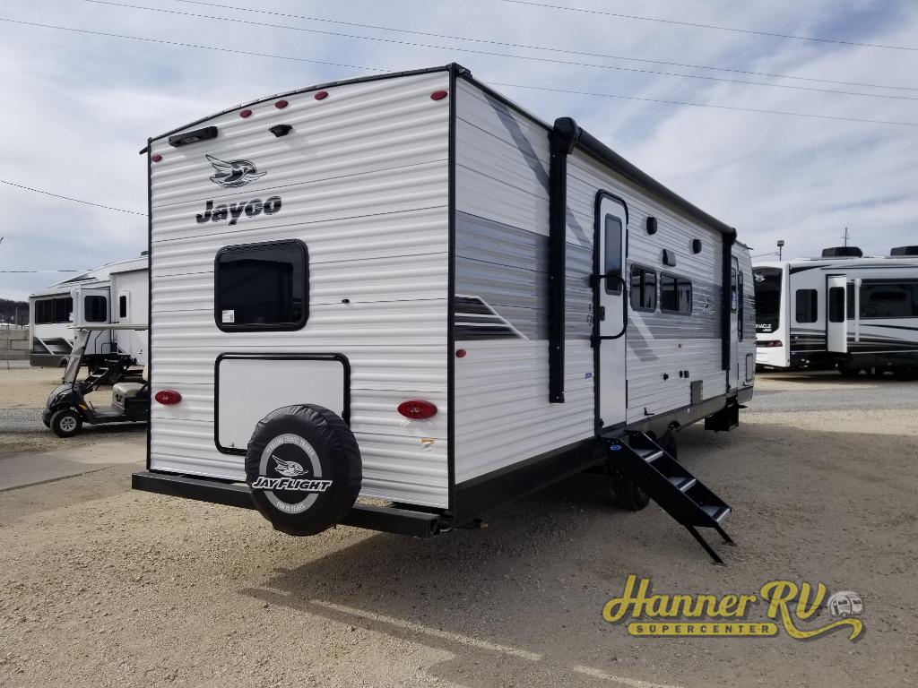 The Jayco Jay Flight SLX travel trailer is quite easy to own because it is lightweight for an easier towing experience. Built on a fully integrated A-frame with galvanized-steel, impact-resistant wheel wells, the Jay Flight SLX has quality at its very foundation. That quality continues on to the electric self-adjusting brakes, easy-lube hubs, Magnum Truss roof system, and LP quick connect. Some of what the mandatory Customer Value Package includes is backup camera prep, Keyed-Alike entry and baggage doors, and an on-demand tankless water heater.