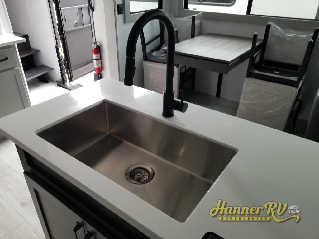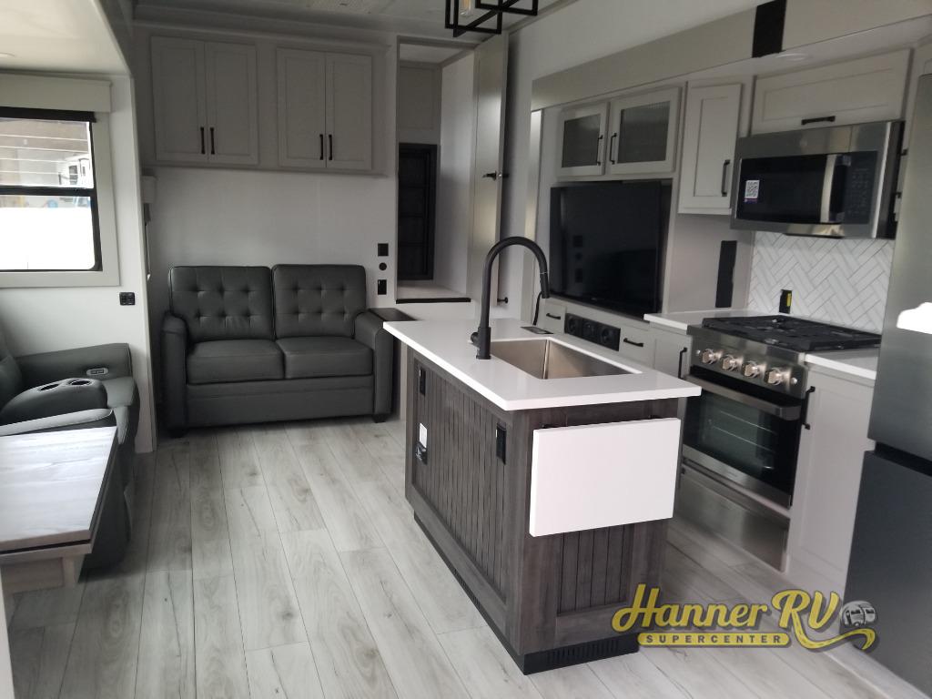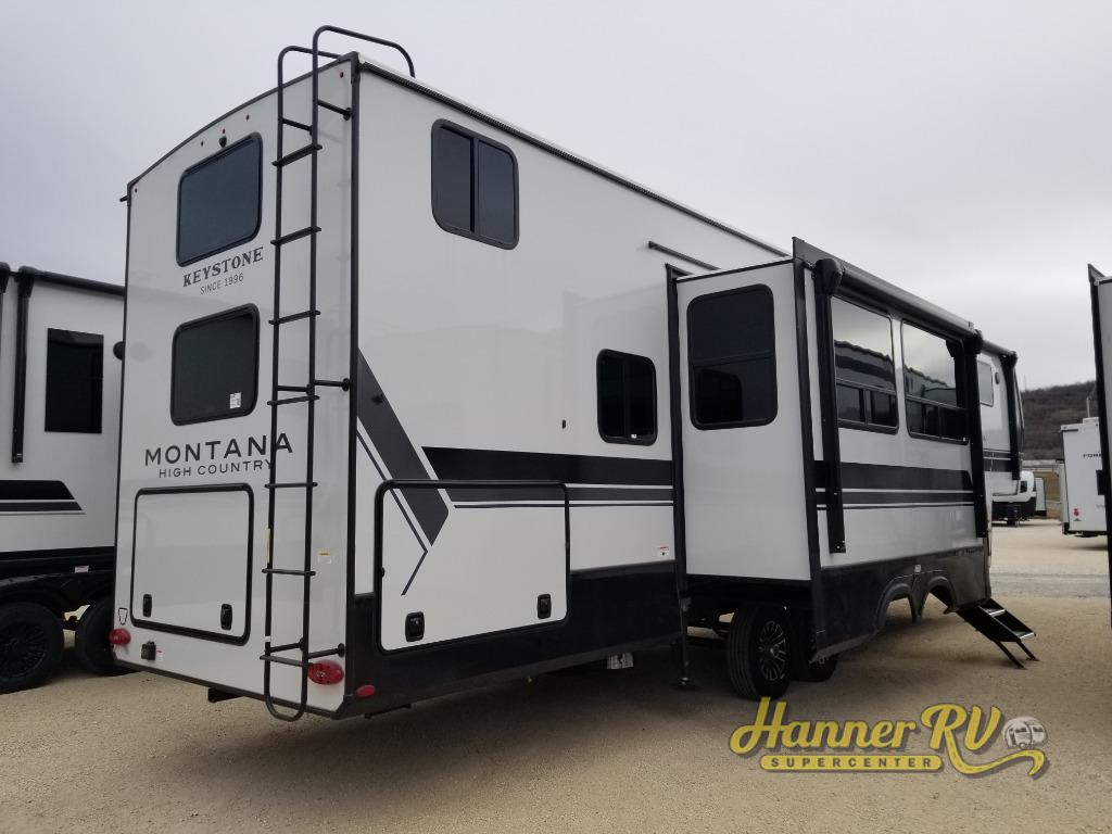 Live the high life with a Keystone Montana High Country fifth wheel! You'll have all the luxury you need with these units. They come with a MaxTurn™ front cap with KeyShield™ automotive-grade paint, a fully walkable roof with Alpha seamless TPO membrane system, and an insulated underbelly with forced hot air and electric tank heaters. The MORryde CRE3000 suspension with wet bolts helps provide a smooth tow, and the Ground Control® four-point electric auto-leveling with hitch memory will make set-up quite easy. The interior is elegantly appointed with the Thomas Payne Collection furniture, hardwood decorative slide-out fascia, Beauflor® vinyl throughout, accent crown molding, and premium solid surface kitchen countertops.
