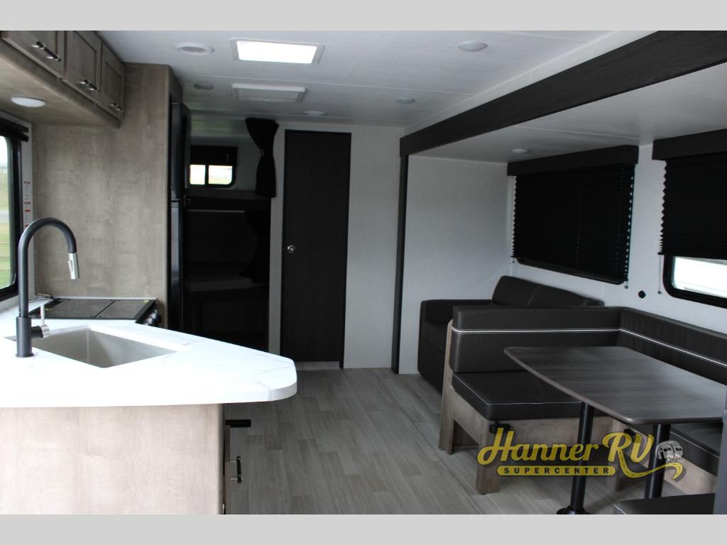 What could be better than camping with double-size bunks for guests? How about a front private bedroom for you, a full bath to clean up in, and a large slide out for maximum space! The chef of your group can prepare breakfast on the three burner gas range in the morning, or use the microwave if you're on the go. There is a U-shaped dinette to dine at, or you can take your plate outdoors to sit under the power awning.