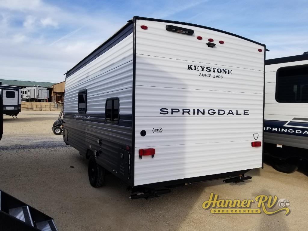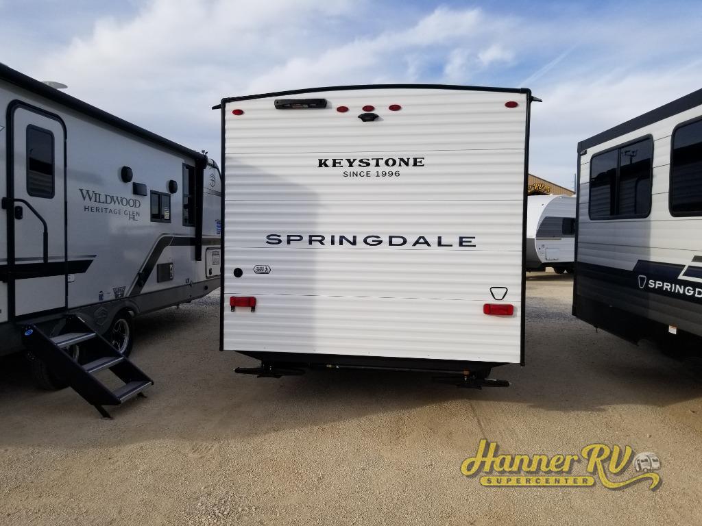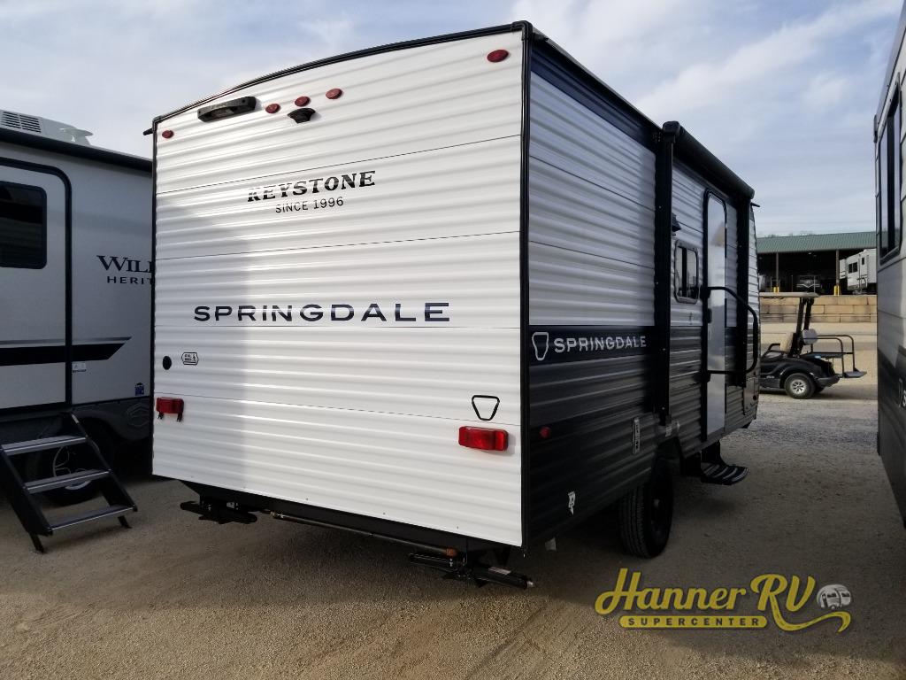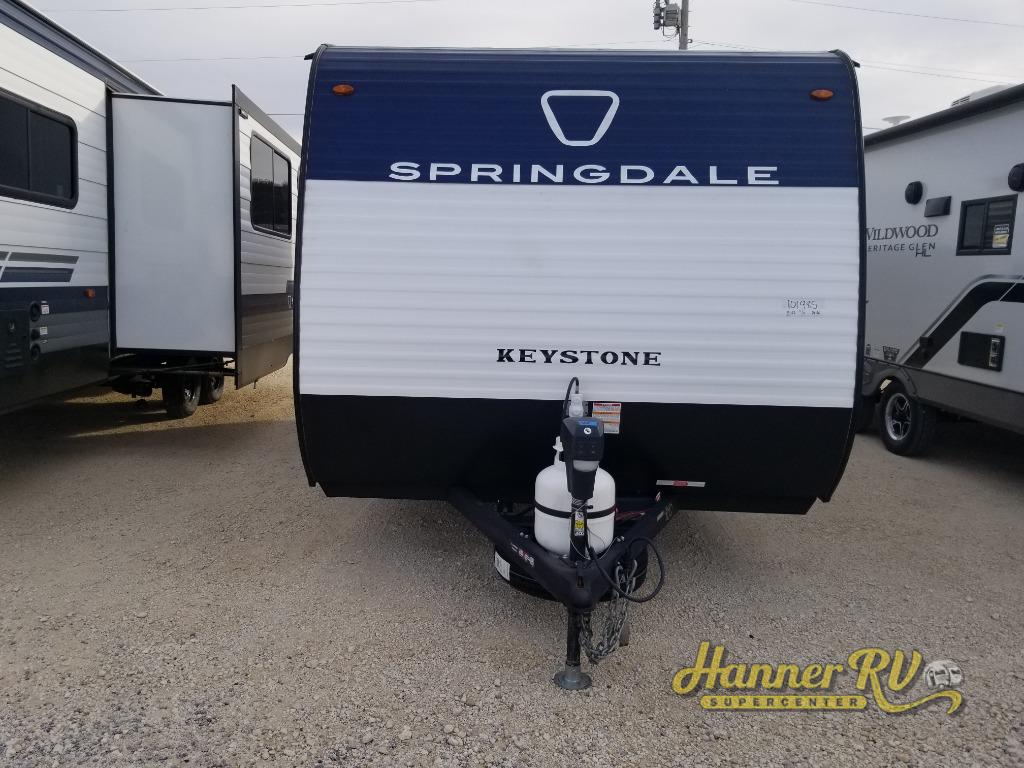 With any Springdale Mini travel trailer by Keystone, you will enjoy lightweight towing thanks to their single axle! The XL tinted safety glass windows are ultra durable, and the power awning will provide protection from the sun as you relax in your camp chairs outside. Each model includes blackout night shades, LED lighting, plus many more interior comforts. There is also a 20K BTU furnace to keep you comfortable, plus a tankless water heater for endless hot showers!