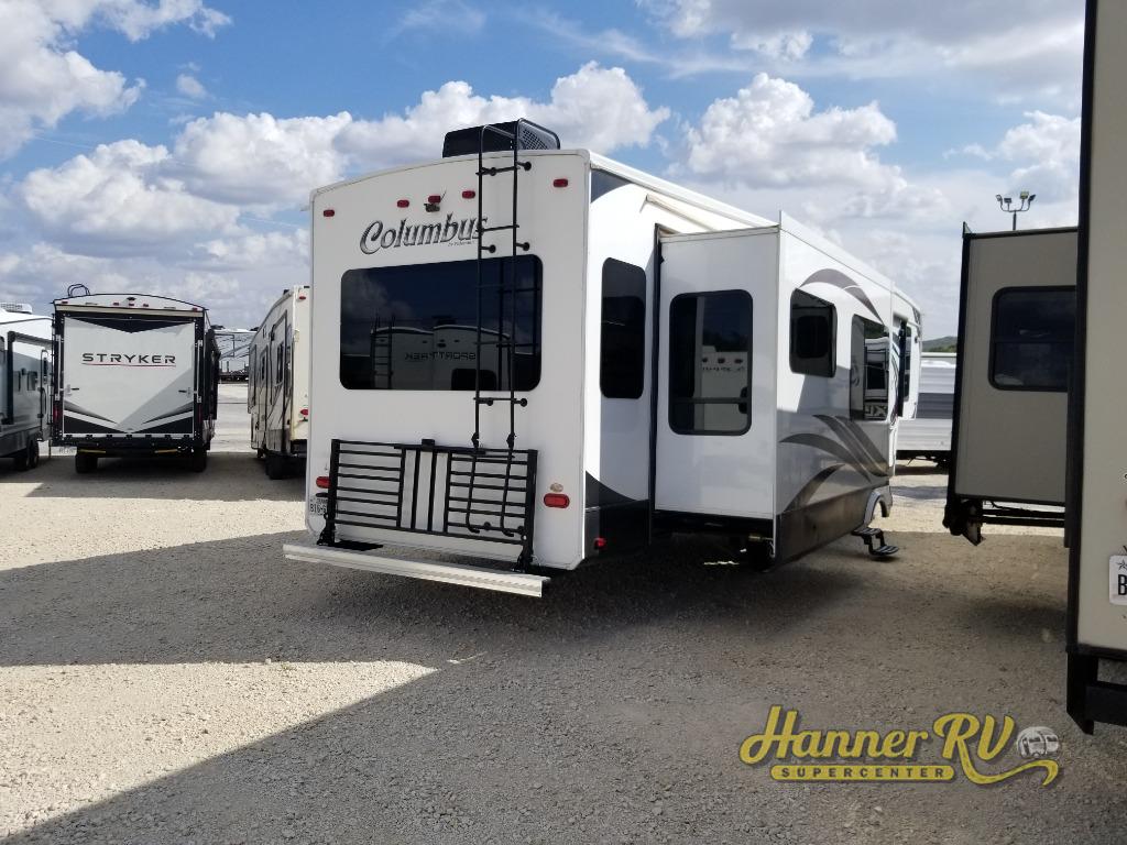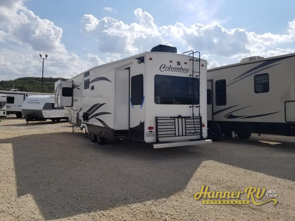 This Palomino Columbus fifth wheel model 377MB has space for everyone, and all the amenities of home to enjoy in the location of your choice! This unit features a rear living area including a fireplace, a convenient kitchen island, a loft above a second bedroom or den area, and a private master bedroom, plus more!