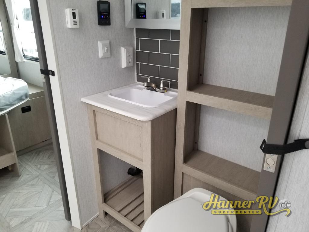 Custom King Bed, Walk-Through Bathroom, Pass-Through Storage, & MORE!Forest River Wildwood travel trailer 22ERAS highlights: