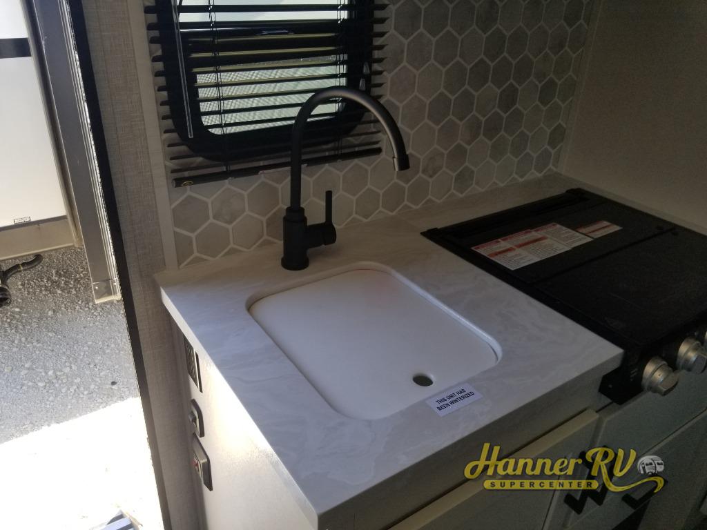 Jayco's lightest travel trailer, the Jay Feather Micro is ready for adventure at the drop of a hat! The Climate Shield weather protection will let you camp well into the colder months and the Stronghold VBL with double-sized Azdel is ultra durable. The Jay Pro Package includes 16-inch American-made Goodyear off-road tires with self-adjusting brakes, a rear-mounted roof ladder, and the Overlander 1 Solar Package with a 200W solar panel. Additional exterior features include marine grade exterior speakers with blue LED accent lighting, a swing-out entry door assist handle, a power tongue jack, and more! Inside, you will love the 4-inch high-density dinette cushions with vinyl backing for easy cleaning, along with the handcrafted hardwood door/drawer fronts, residential style kitchen countertops, and decorative roller shades with a reflective barrier for better insulation.