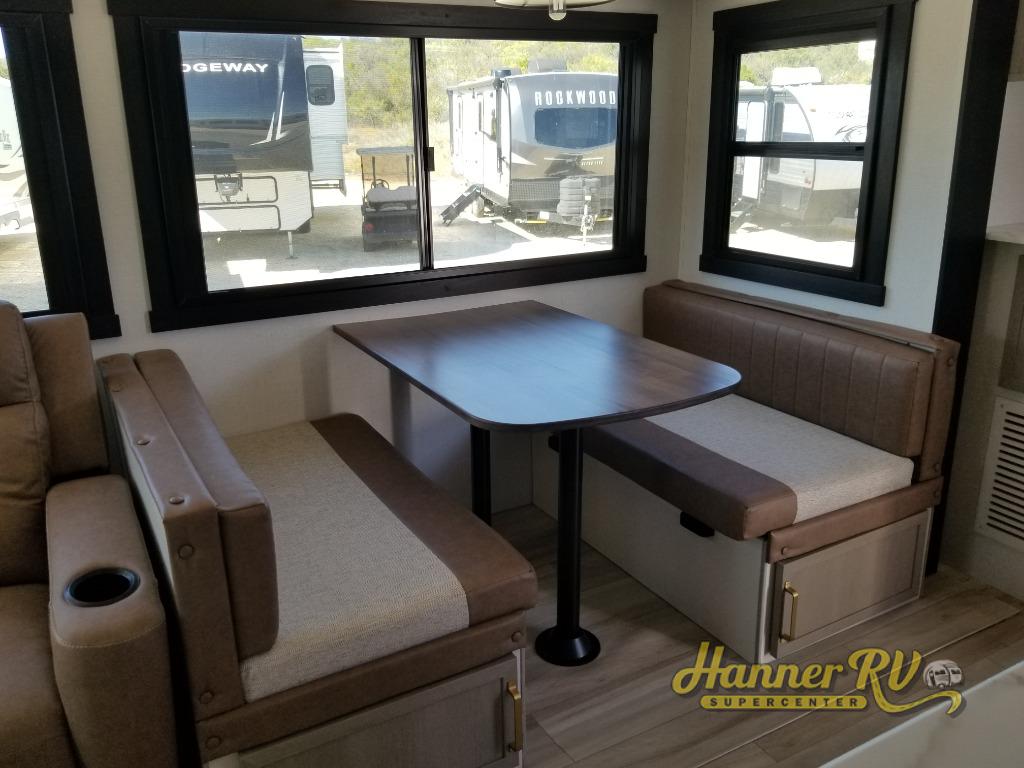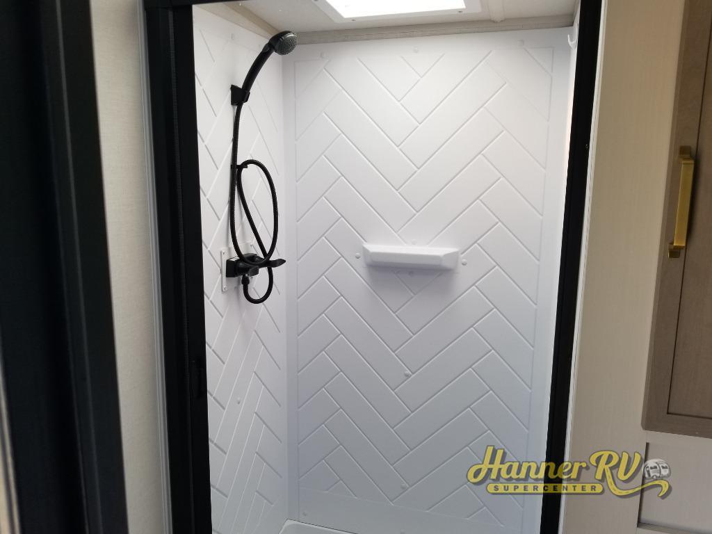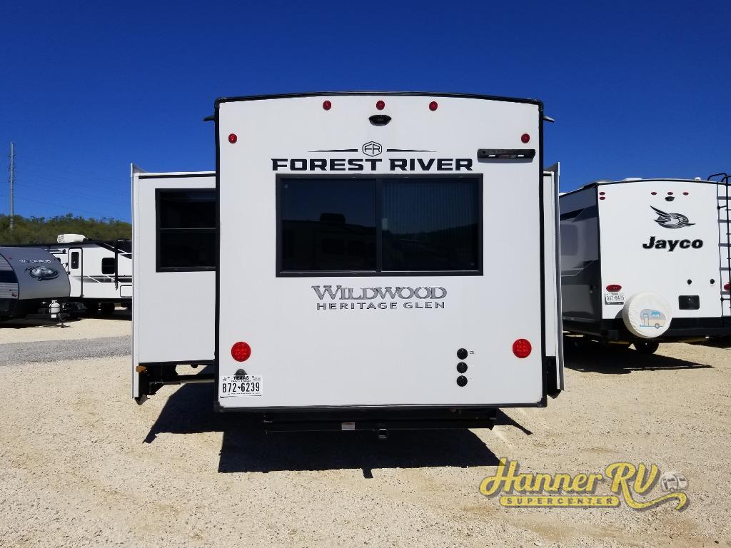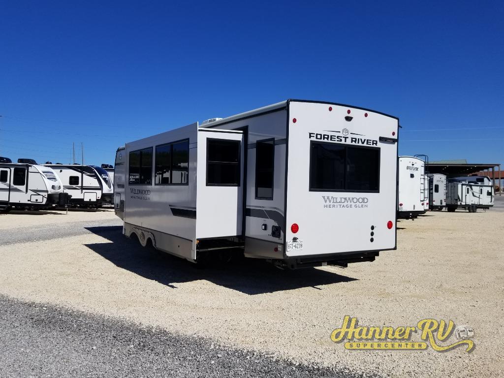 With any Wildwood Heritage Glen travel trailer by Forest River, the quality construction, attention to detail and design along with a bright and welcoming interior allows you to relax in comfort with conveniences while exploring outdoors. Each model includes a WeatherShield one piece fiberglass roof, Maxxis radial tires, and an enclosed underbelly with 12V tank heaters on all holding tanks for added protection. You will appreciate the on-demand tankless water heater, along with the 15K BTU Quite Cool A/C and 50 Amp service with a brace for a second A/C. There is an outside shower with hot and cold water, solar prep, a power tongue jack, plus many more exterior conveniences. Head inside to enjoy matte gold hardware, wood door casings in place of plastic door casings, and full length barreled ceilings for additional head room.