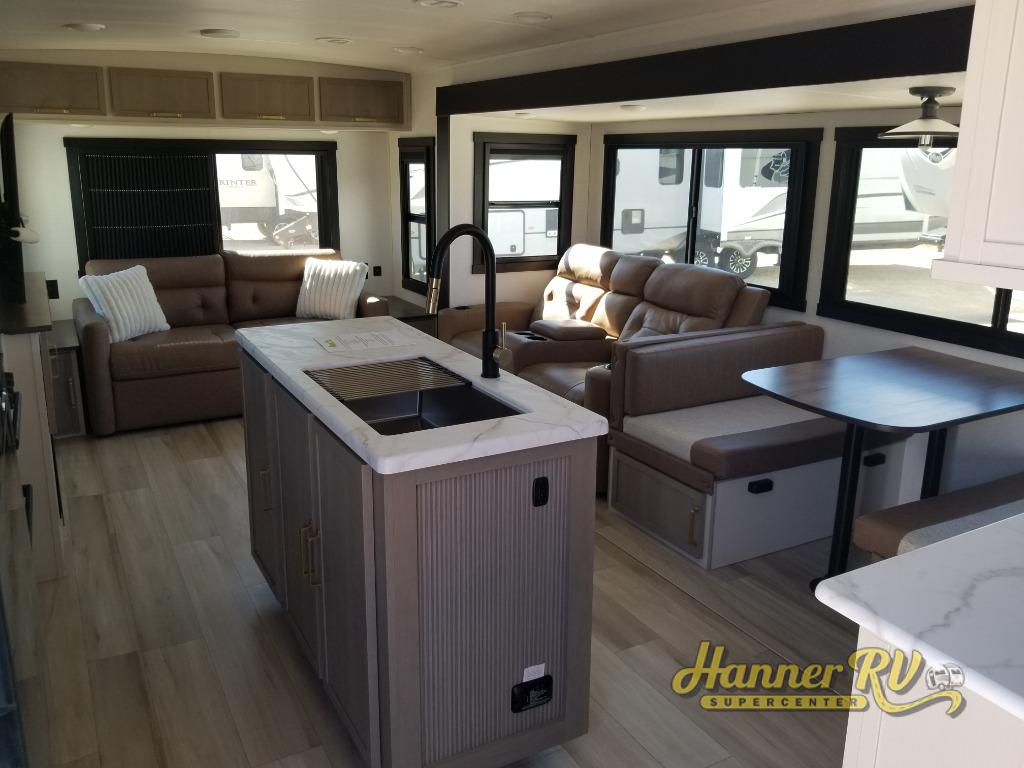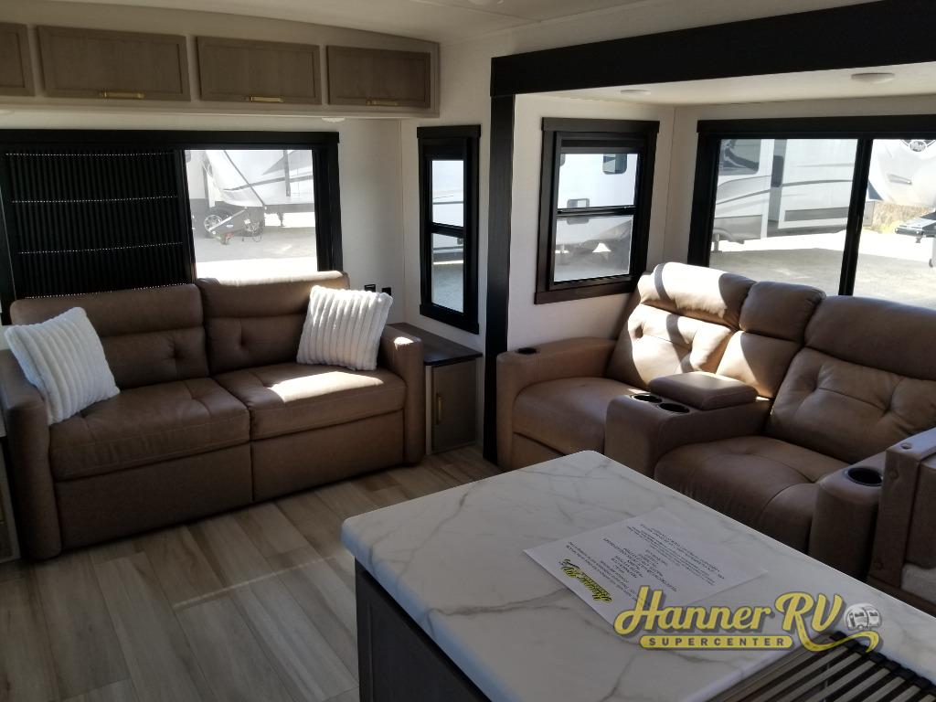 Outside Kitchen/Bar, Queen Bed, Dual Opposing Slides, Theater Seats & More!