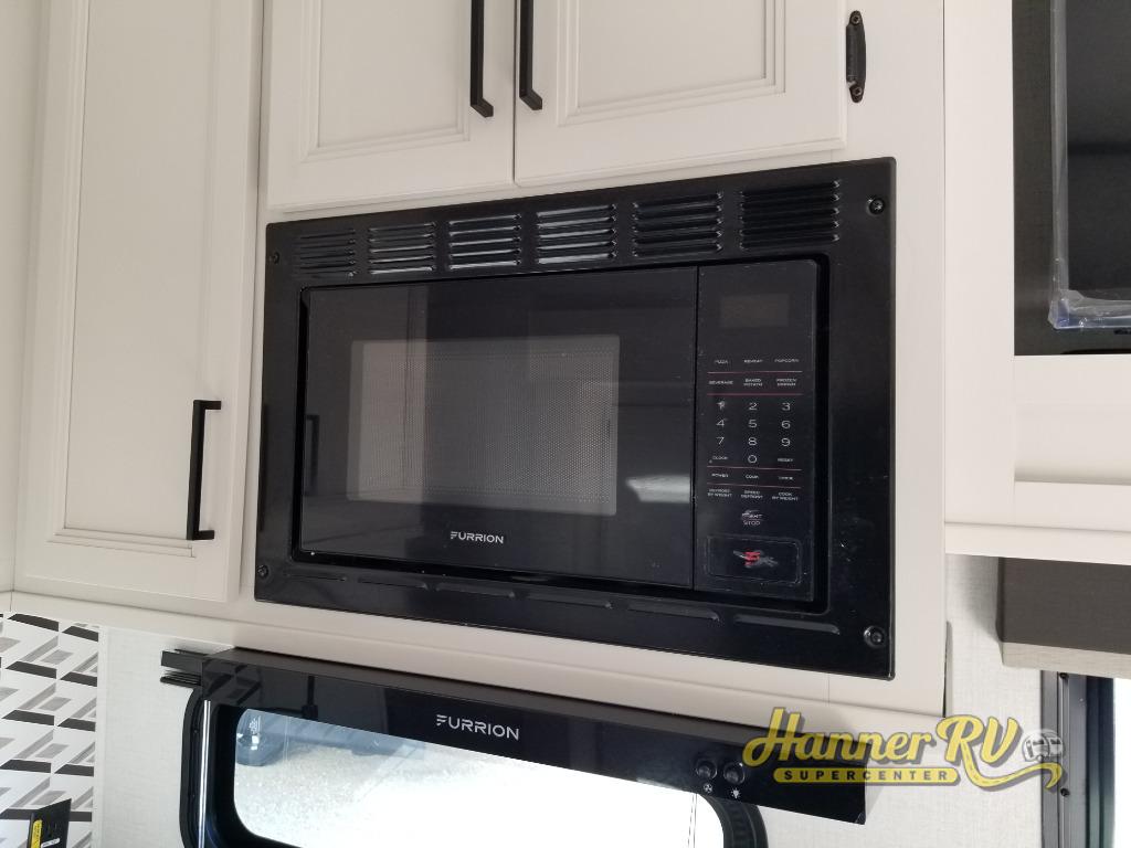 Trips to the lake are made complete in this spacious fifth wheel that can sleep six each night. You'll enjoy your own private bedroom up front that includes a queen bed, a wardrobe, plus bedside wardrobes and nightstands for your things. After you've made dinner on the cooktop, you can dine around the rear U-shaped dinette. There is additional seating on the tri-fold sofa, and both of these areas can double as sleeping space for guests. If you're wanting a little more comfort, just choose the optional theater seating in place of the sofa.