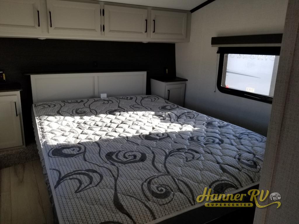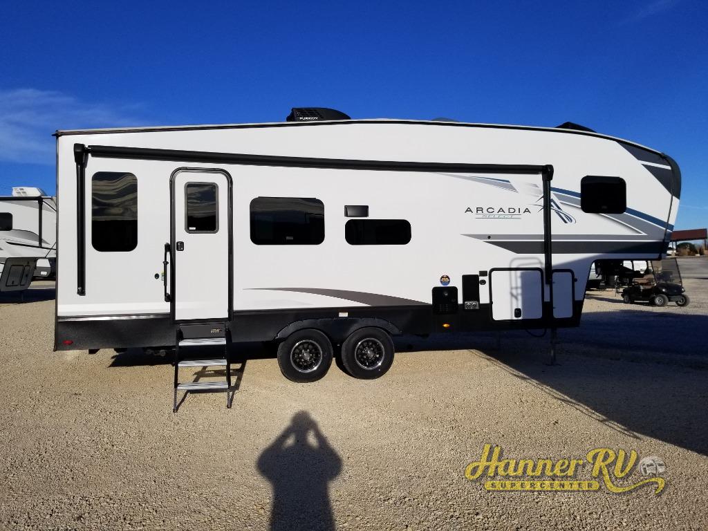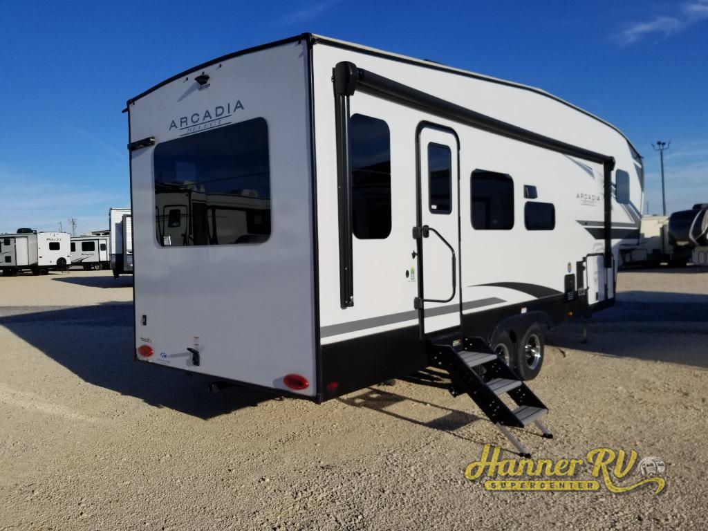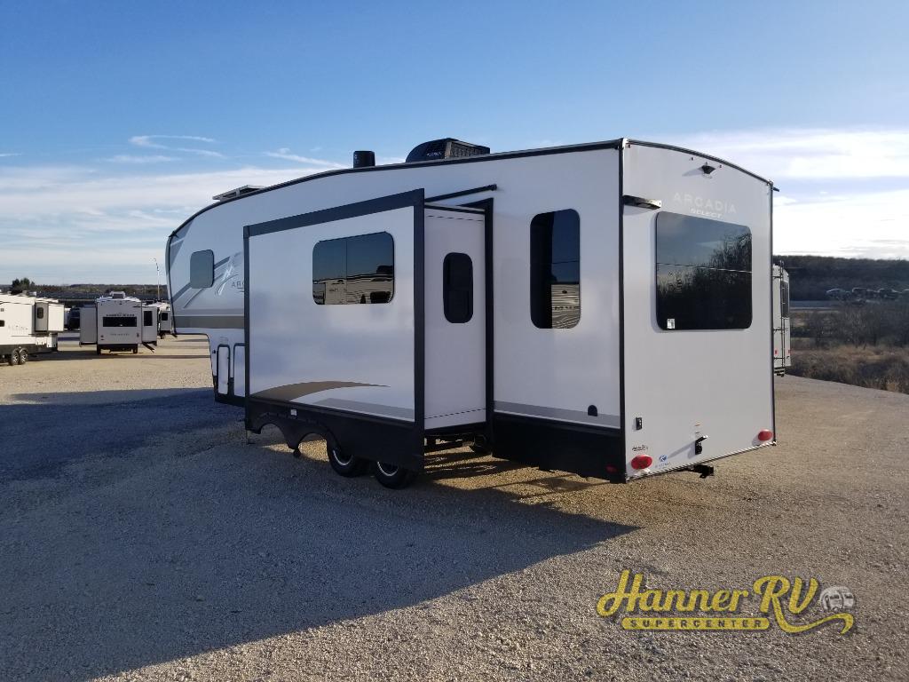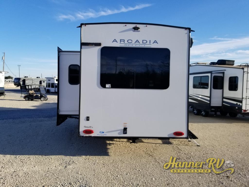 With any Arcadia Select fifth wheel by Keystone you will enjoy easy towability and at-home comforts at an affordable price! The laminated sidewalls with five sided aluminum superstructure will provide a strong foundation so you can enjoy your RV for years to come, plus a one-piece, heated and enclosed polypropylene underbelly means you can camp year around! And an upgraded Roto-Flex hitch pin with will make it easy to tow. Head inside to find tall slides for added space, seamless, pressed countertops, convenient underbed storage, and a large shower with a retractable door and skylight. These fifth wheels also include a Blade Pure A/C system, Girard on-demand tankless water heater, two 30 lb. LP tanks, and more utilities to make your camping experience run smoothly.