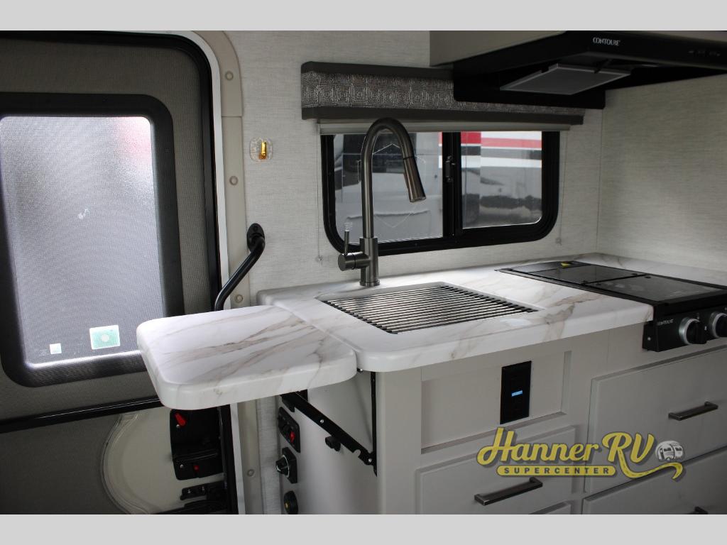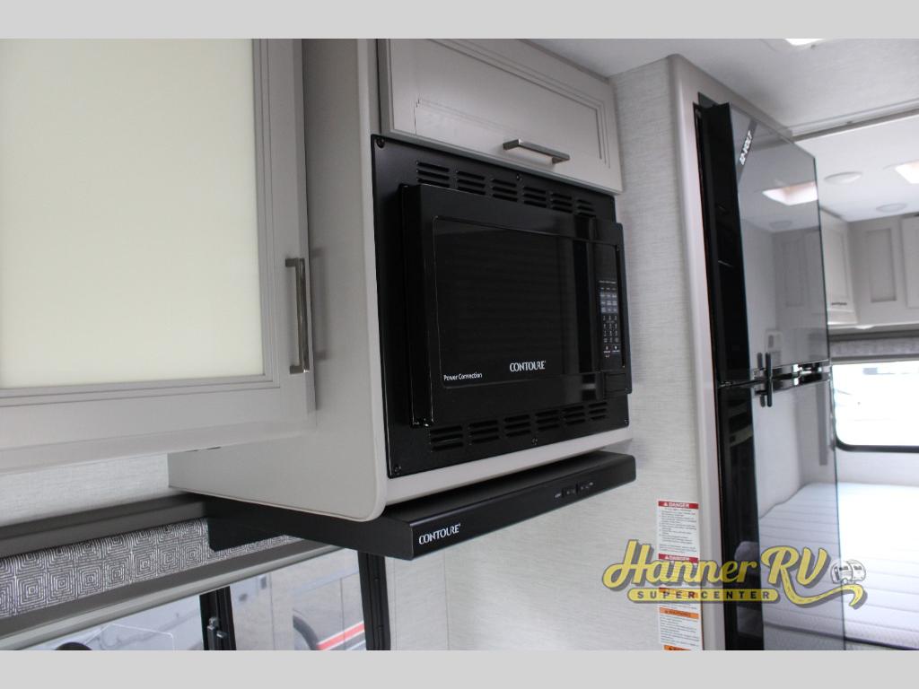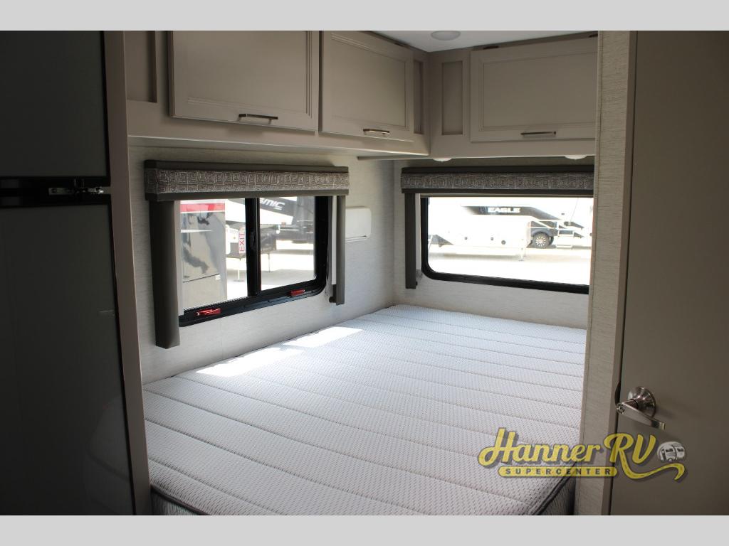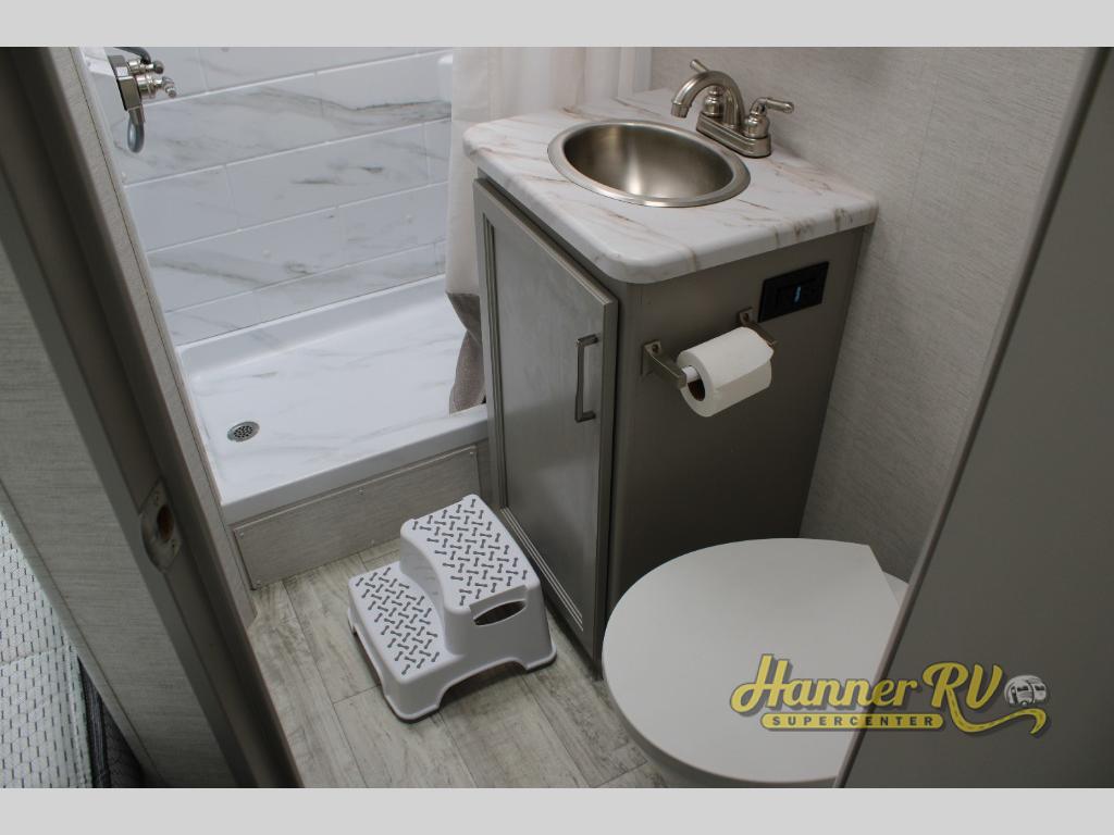 It won't be hard to find comfort in this coach for five! You can freshen up in the rear corner full bath once you've set up camp, then make lunch on the two burner gas cooktop or convection microwave with an air fryer. There is also a 12V refrigerator for cold items and a flip-up countertop for more space. Whether you dine at the Dream Dinette or take your plate outdoors under the 15' power awning, you're sure to have a great time in this motorhome. The rear corner full-size bed will provide a comfy place to rest your head at night, while your guests take the dinette and cab-over bunk!