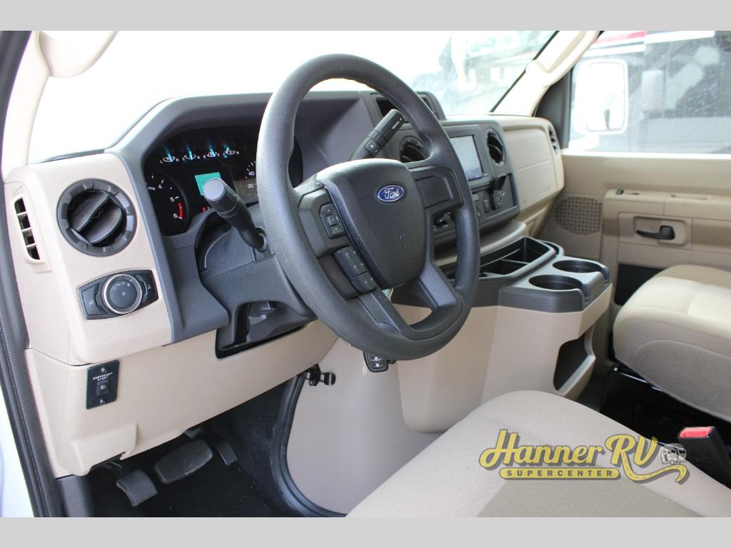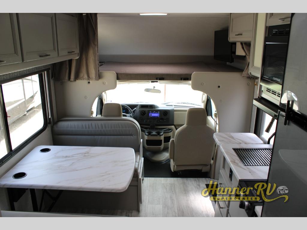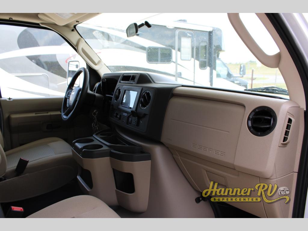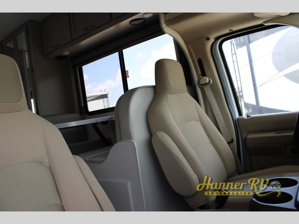 With any Chateau ESpec Essential Class C gas motorhome by Thor Motor Coach, you will find convenient amenities, a modern interior, and a reliable Ford E-Series chassis, with an optional Chevy chassis on select models to power your adventures. There is welded tubular aluminum roof and sidewall cage construction, a one-piece fiberglass front cap, and premium one-piece Crossflex exterior roofing for added strength. Residential vinyl flooring will be easy to keep clean, and you'll love the sleek look of the Coastline Grey flat panel cabinet doors. These motorhomes also include a 4.0 kW gas generator and a 30-amp shoreline power cord to keep you going, along with a tankless water heater and 13,500 roof front A/C to ensure your comfort!